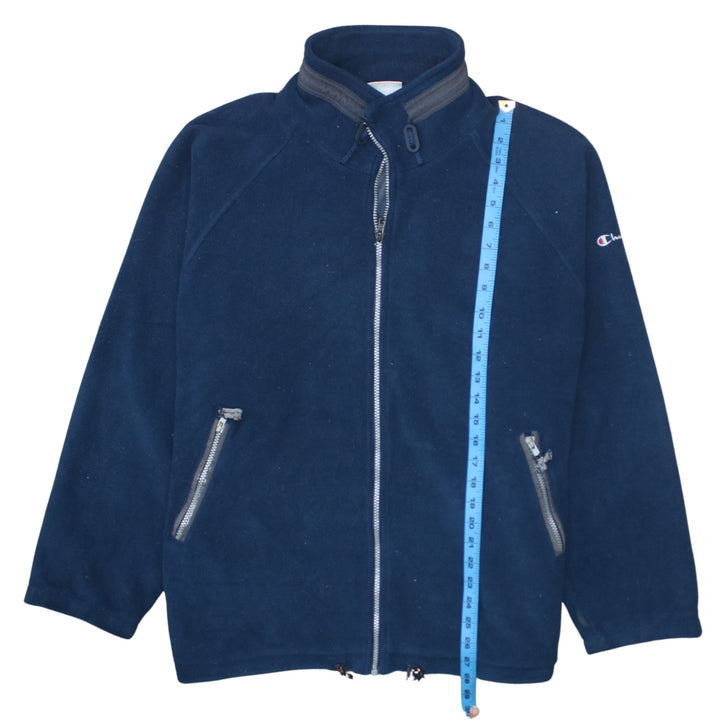 Champion Navy Blue Fleece Jacket Men’s Medium Embroidered Sleeve Logo Zip Pockets Outerwear