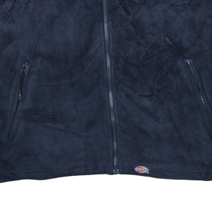 Dickies Navy Blue Fleece Jacket Men's XLarge Embroidered Chest Logo Zip Pockets Full Zip