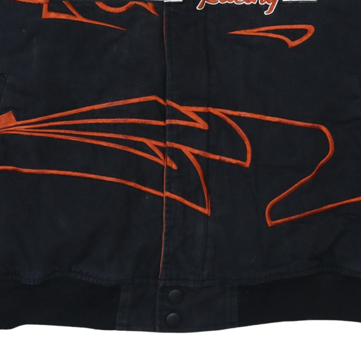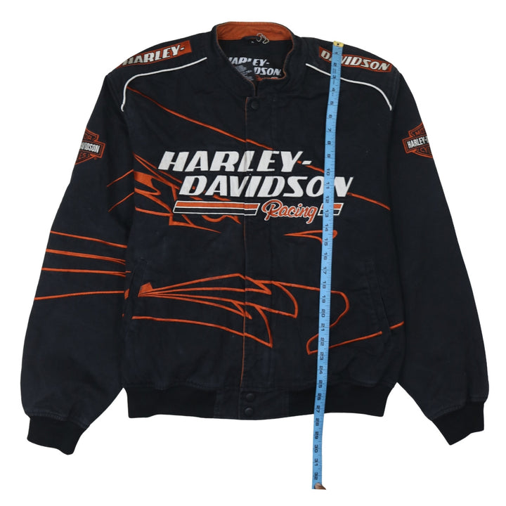 Harley Davidson Black Racing Jacket Men's XLarge Embroidered Logos Flame Graphics Outerwear