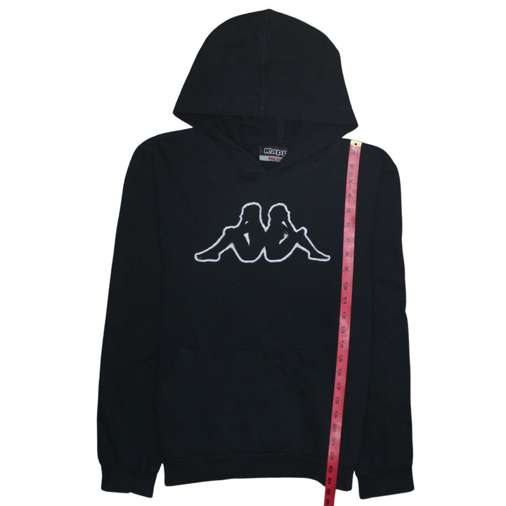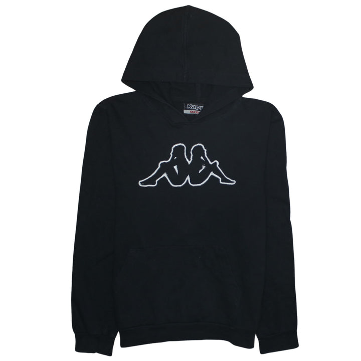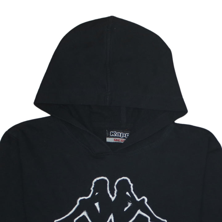 Kappa Black Hoodie Men’s Medium Embroidered Omini Logo Front Pocket Pullover Sweatshirt