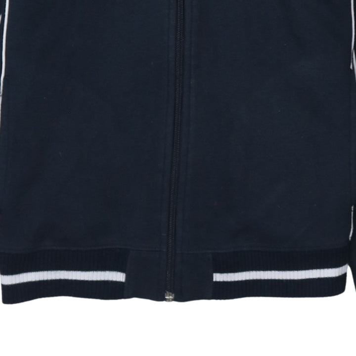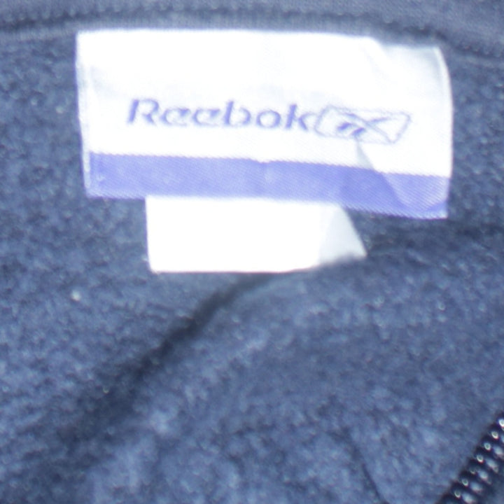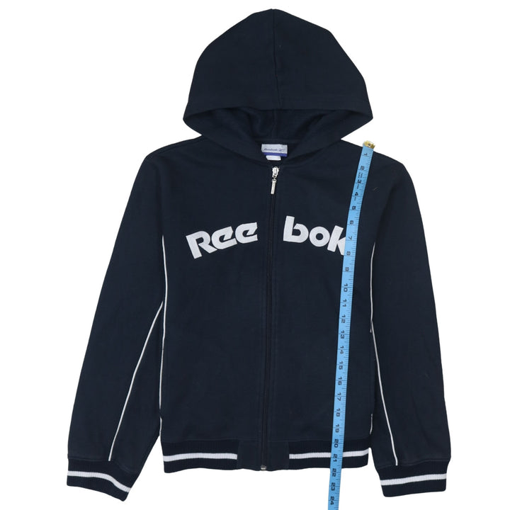 Reebok Navy Blue Full Zip Hoodie Men's Medium Printed Logo Stripe Cuff Casual Sweatshirt