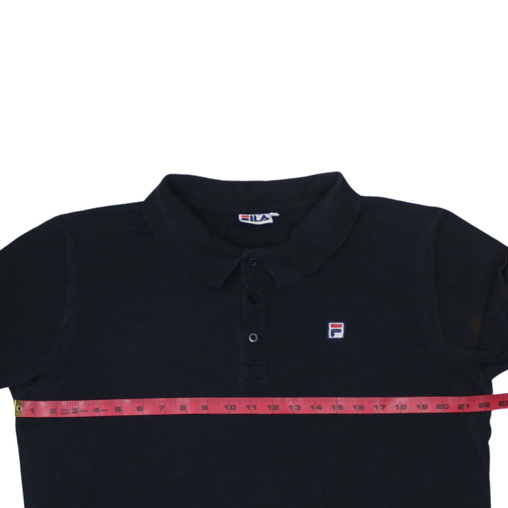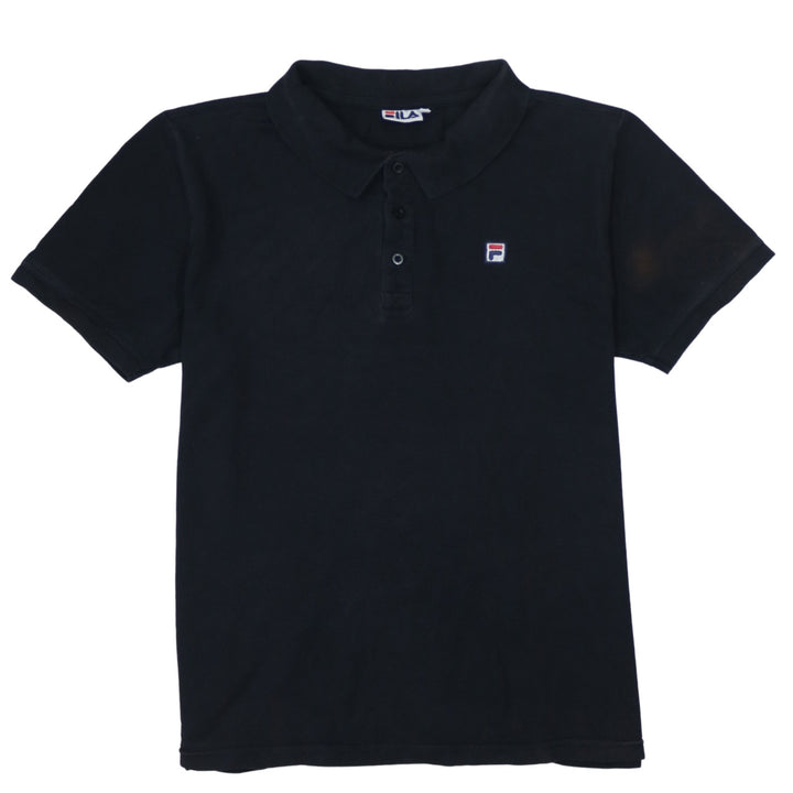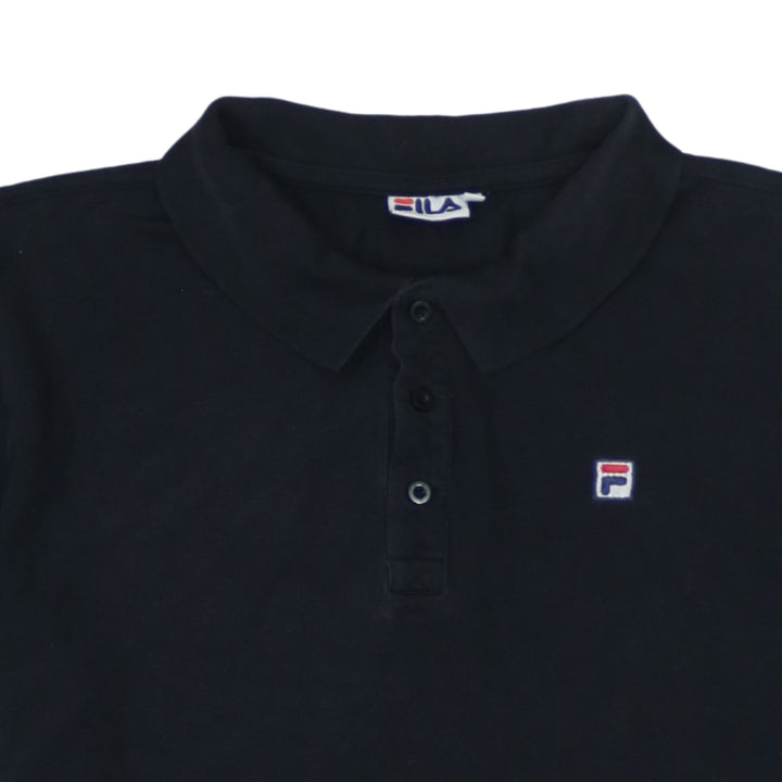 Fila, Fila polo, Fila black polo, black polo shirt, men's polo shirt, men's Fila top, men's black polo, short sleeve polo, casual polo shirt, sportswear polo, classic polo, embroidered logo polo, Fila embroidered logo, large size polo, men's size L, relaxed fit polo, nylon blend polo, casual shirt, collared shirt, smart casual top, golf polo, tennis polo, everyday wear top, black short sleeve shirt, Fila clothing, Fila menswear, street casual top, pre-owned Fila, second hand Fila polo, branded polo shirt, logo polo, minimalist polo, solid black polo, summer polo, spring polo, layering piece, core basic polo, wardrobe essential, Fila fan, mens casualwear, mens smart casual, button neck polo, breathable fabric top, soft feel polo, small logo shirt, UK style polo