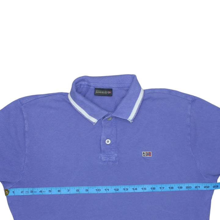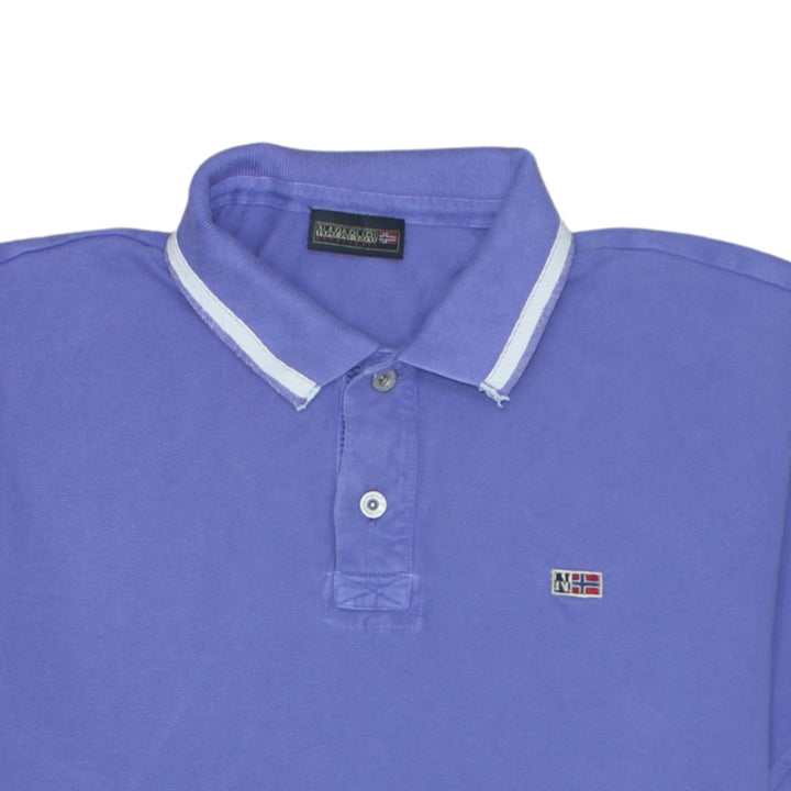 Napapijri Purple Polo Shirt Men's Large Embroidered Chest Flag Logo Short Sleeve Top