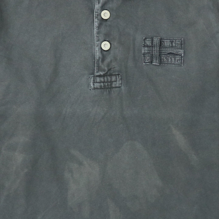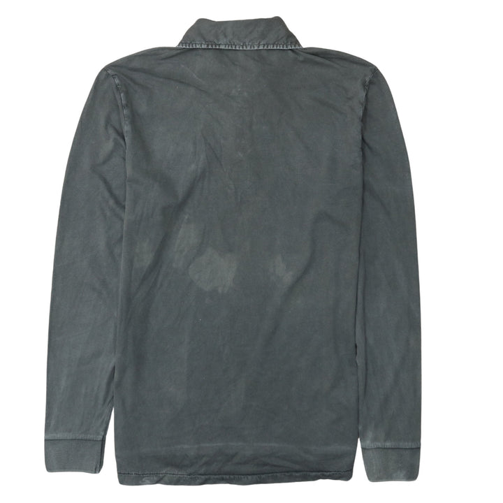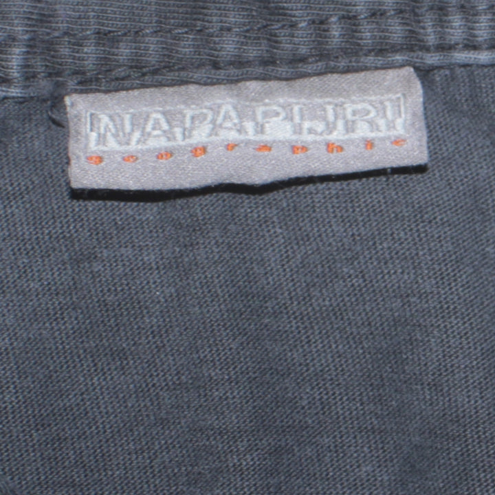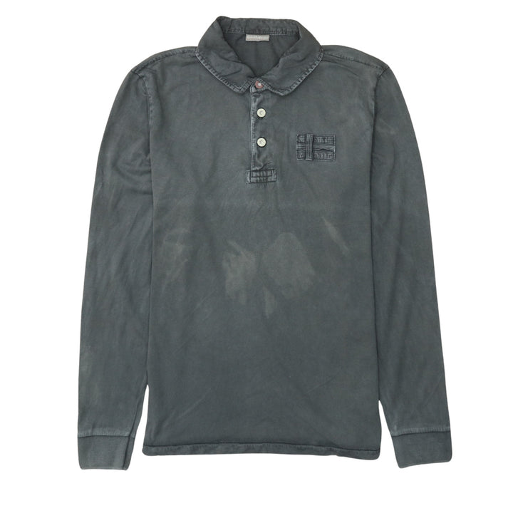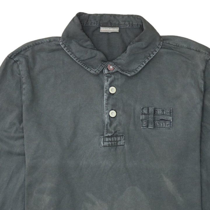 Napapijri Charcoal Long Sleeve Polo Shirt Men's Medium Embroidered Chest Flag Casual Top