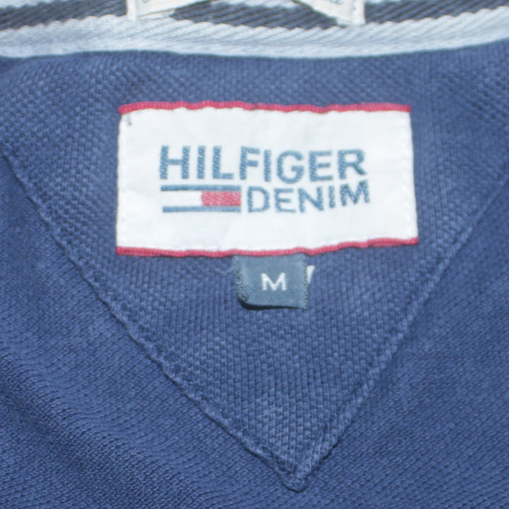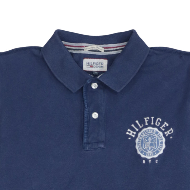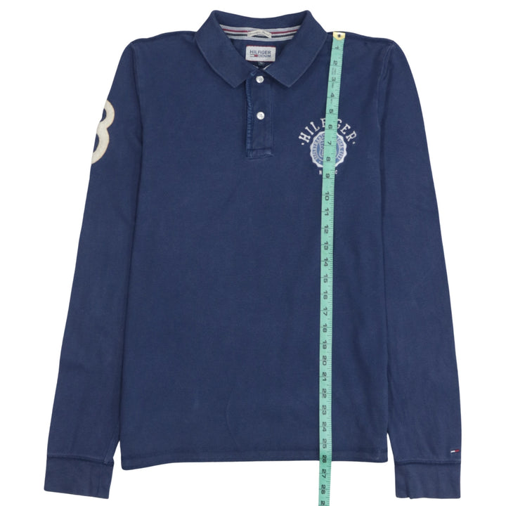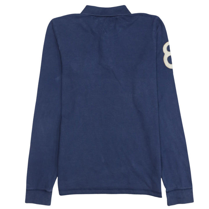Tommy Hilfiger Navy Blue Long Sleeve Polo Shirt Men's Medium Embroidered Crest Logo Number 8 Rugby Top