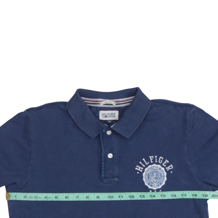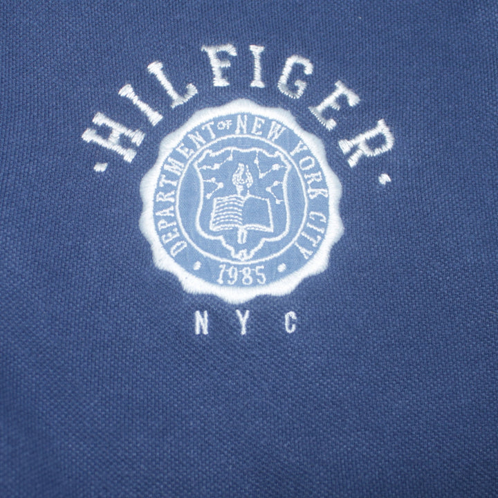 Tommy Hilfiger, Hilfiger polo, navy blue polo shirt, long sleeve polo, men’s medium polo, men’s navy top, embroidered crest logo, Hilfiger NYC crest, number 8 sleeve, rugby style shirt, casual polo top, smart casual shirt, classic polo collar, button placket top, cotton blend polo, pique knit shirt, designer polo shirt, men’s designer clothing, pre-owned Hilfiger, A grade vintage quality, navy long sleeve top, college style polo, embroidered logo shirt, men’s casual wear, everyday polo, layering piece, wardrobe staple, Hilfiger flag logo, medium size polo, chest 19.5 pit to pit, length 26 inches, arm 23.5 inches, blue rugby polo, smart weekend wear, men’s fashion, second hand designer, quality used clothing, classic navy shirt, Hilfiger sportswear, timeless style, casual rugby top, long sleeve tee alternative, collared long sleeve, embroidered badge polo, logo polo shirt, navy designer top, men’s long sleeve casual, Tommy Hilfiger medium navy