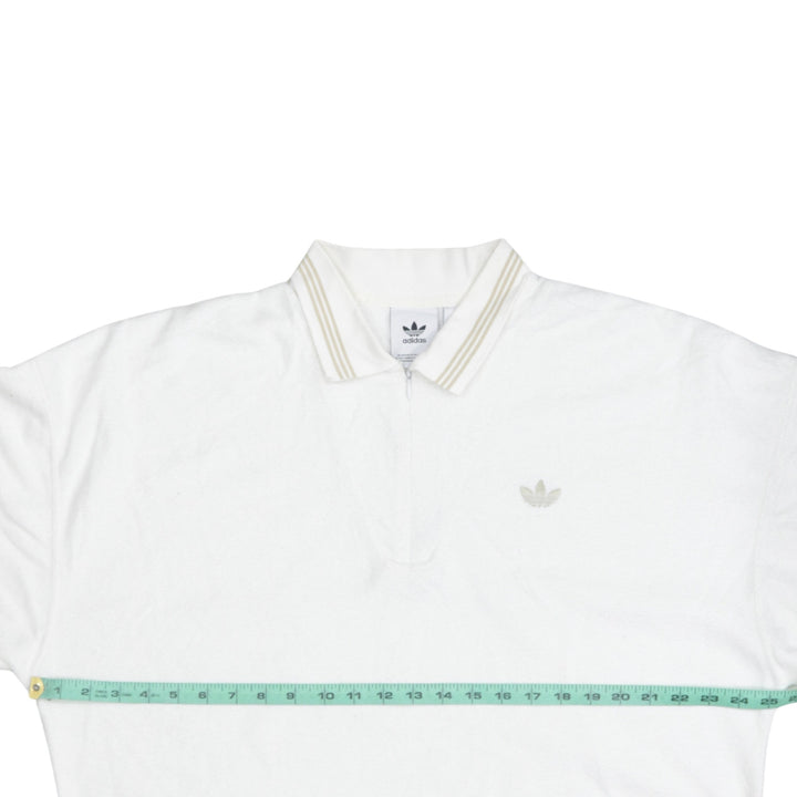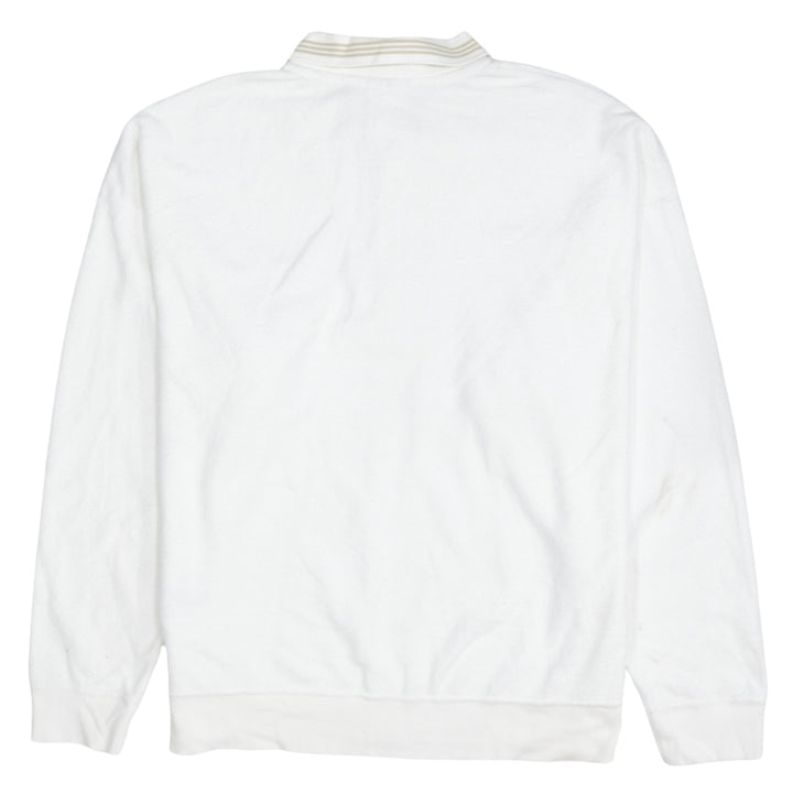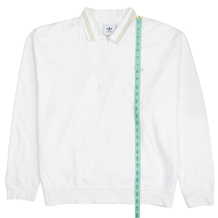 Adidas White Sweatshirt Men's Large Trefoil Logo Zip Neck Striped Collar Pullover Top