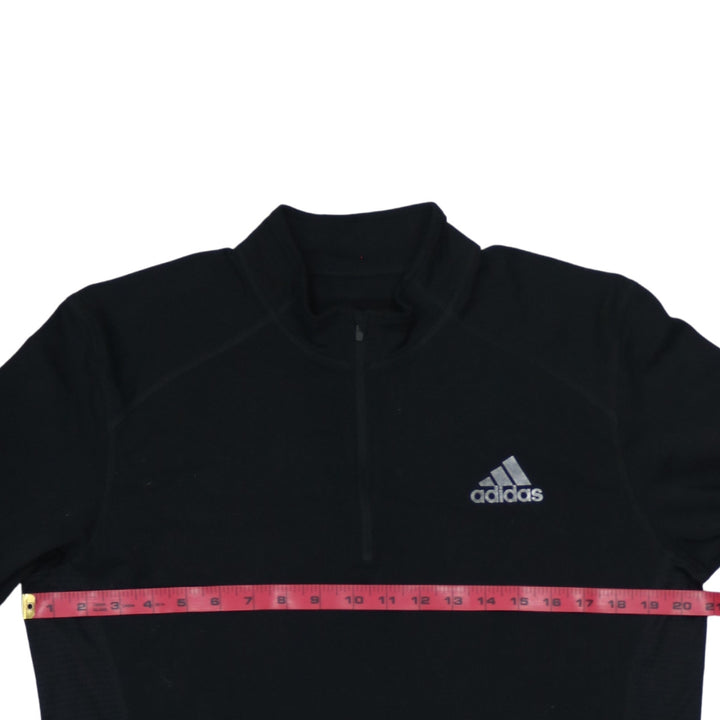 Adidas, Adidas top, Adidas sweatshirt, Adidas training top, Adidas quarter zip, Adidas ClimaCool, black Adidas, black quarter zip, black training top, men's Adidas, men's medium, medium sweatshirt, long sleeve top, performance top, running layer, gym wear, sportswear, activewear, pullover, lightweight sweatshirt, reflective details, reflective sleeves, mesh panels, breathable fabric, athletic wear, casual top, layering piece, crew training top, football training top, running sweatshirt, sports sweatshirt, Adidas logo top, printed logo, quarter zip pullover, black long sleeve, men's active top, fitness top, workout gear, everyday basic, classic Adidas style, A grade condition, pre-owned Adidas, second hand Adidas, ClimaCool technology, training sweatshirt, slim fit layer, comfortable top, soft fabric, versatile black top