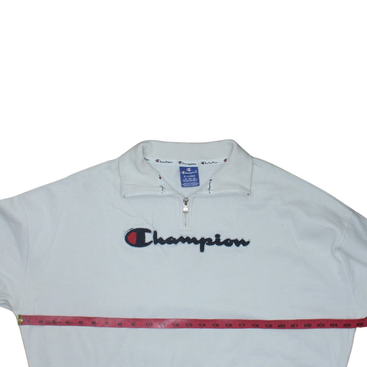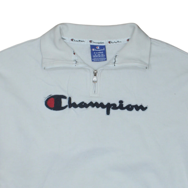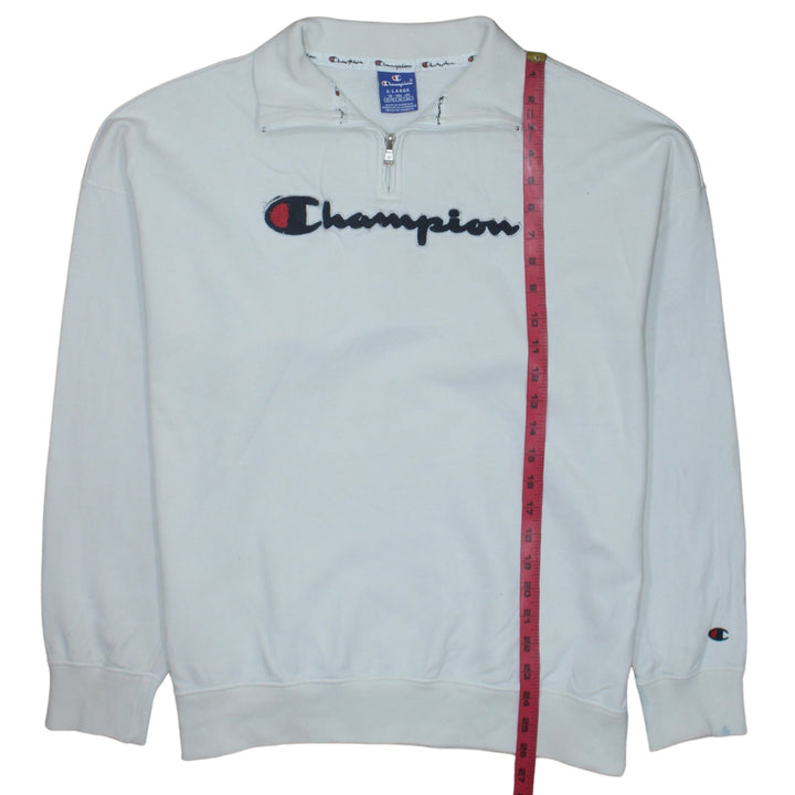 Champion White Quarter Zip Sweatshirt Men's XLarge Embroidered Script Logo Pullover Top