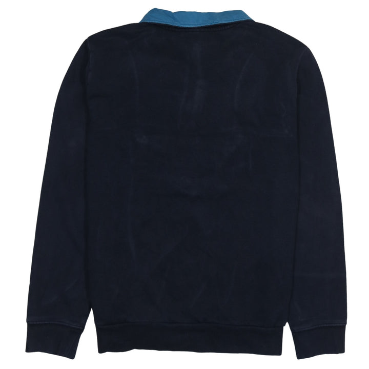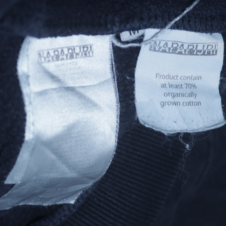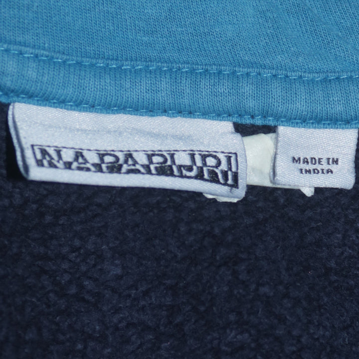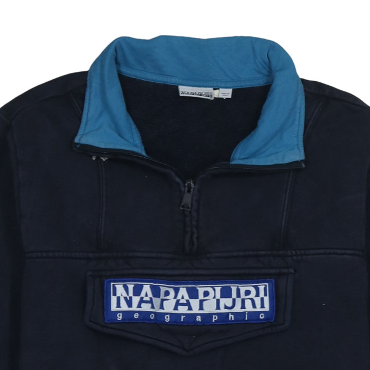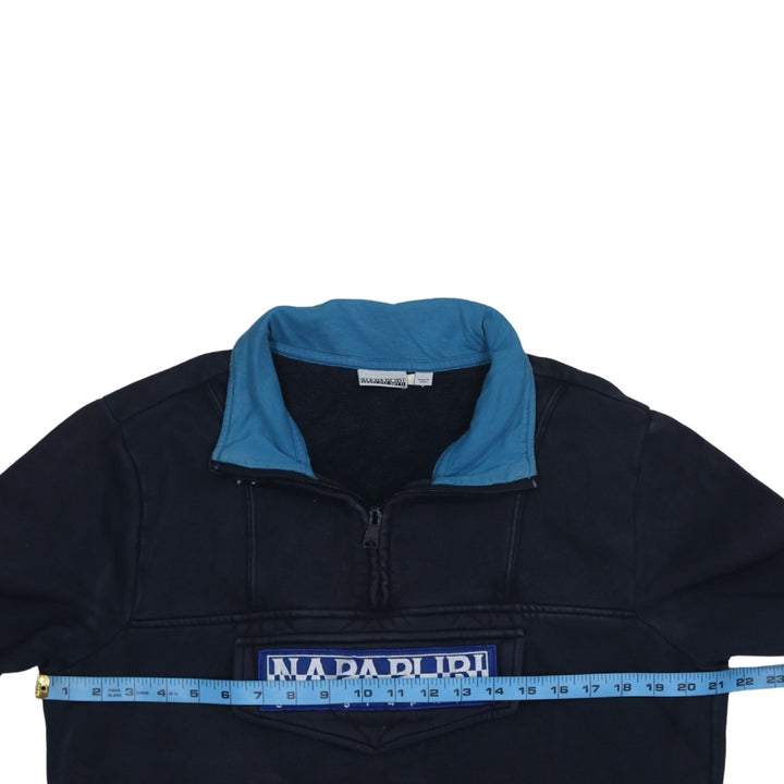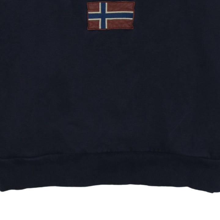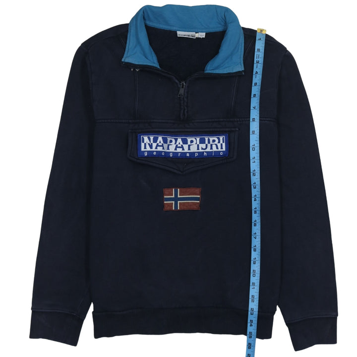 Napapijri Navy Blue Sweatshirt Men's Medium Half Zip Flag Patch Embroidered Logo Pullover