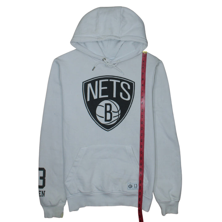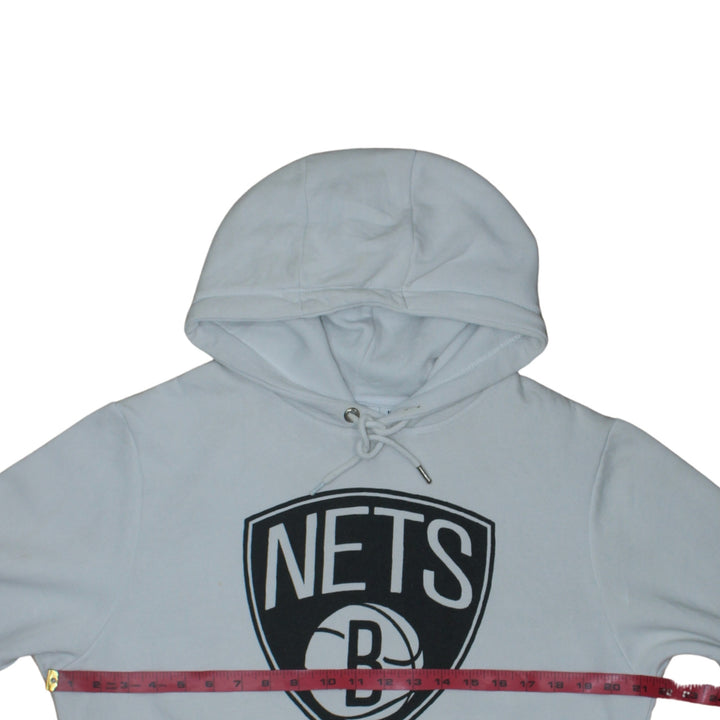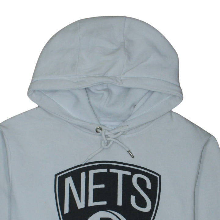 NBA White Hoodie Men's Medium Brooklyn Nets Printed Logo Fleece Pullover Sweatshirt