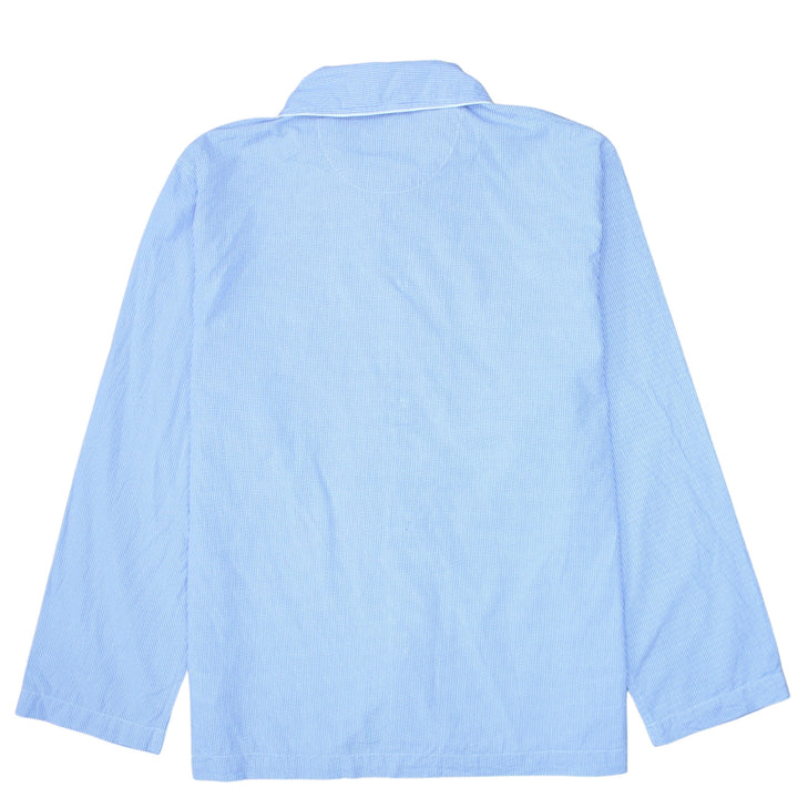 Polo Ralph Lauren, Ralph Lauren, Polo shirt, long sleeve shirt, pyjama top, lounge shirt, sleep shirt, night shirt, men’s shirt, menswear, men’s large, size L, large, light blue shirt, blue check shirt, micro check pattern, gingham style, embroidered pony logo, chest pocket shirt, button front shirt, relaxed fit shirt, oversized fit, casual top, lounge top, nightwear top, classic collar shirt, piped shirt, contrast piping, nylon shirt, lightweight shirt, comfortable shirt, soft fabric shirt, casual loungewear, layering shirt, classic style, timeless design, pre-owned Polo, second hand Polo Ralph Lauren, A grade condition, checked nightshirt, men’s sleepwear, men’s loungewear, shirt for home, gift idea, wardrobe staple, everyday shirt, Polo Ralph Lauren top, blue lounge top