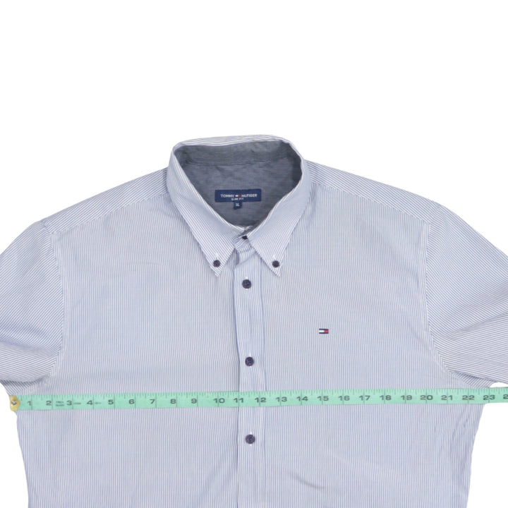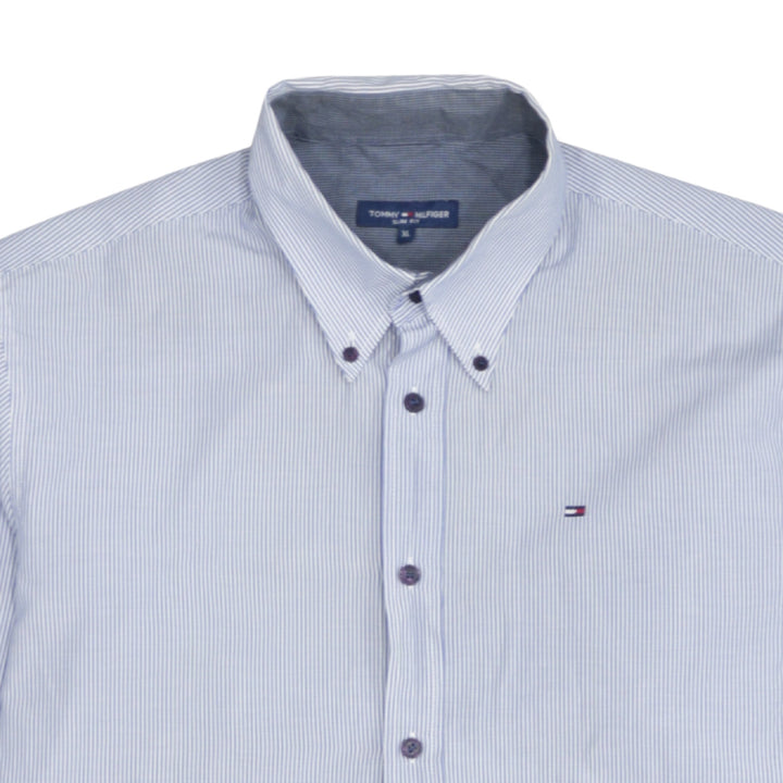 Tommy Hilfiger Light Blue Stripe Shirt Men’s XLarge Button Down Embroidered Logo Casual Top