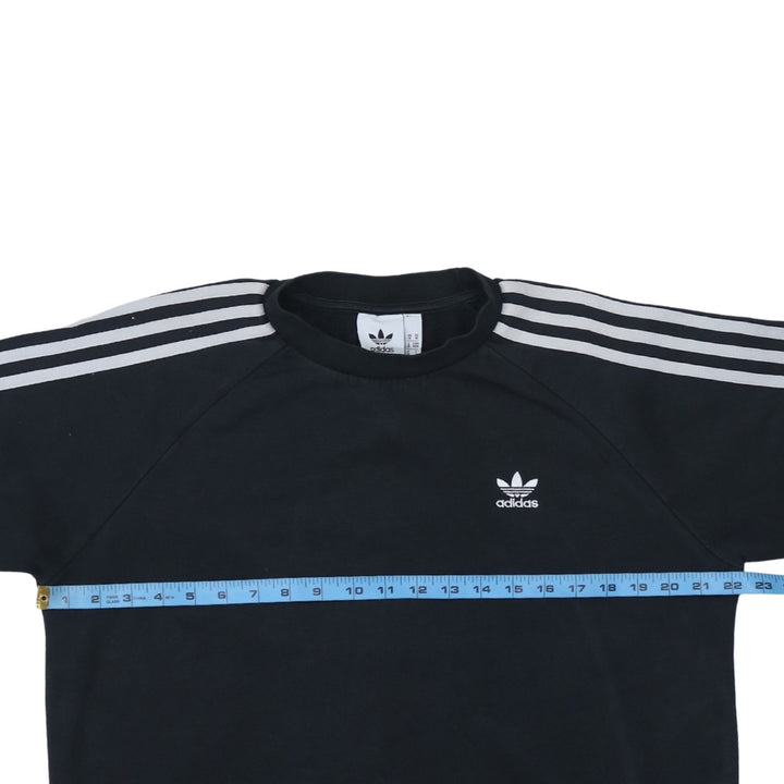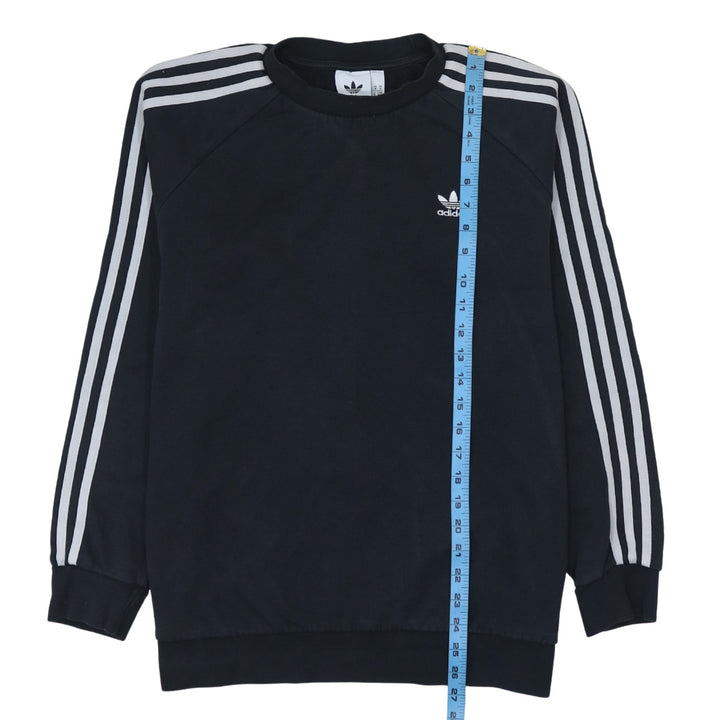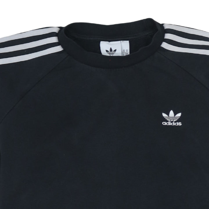 Adidas Black Sweatshirt Men's Medium Trefoil Embroidered Logo Three Stripe Sleeves Pullover Top