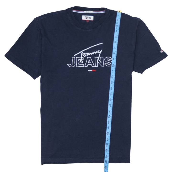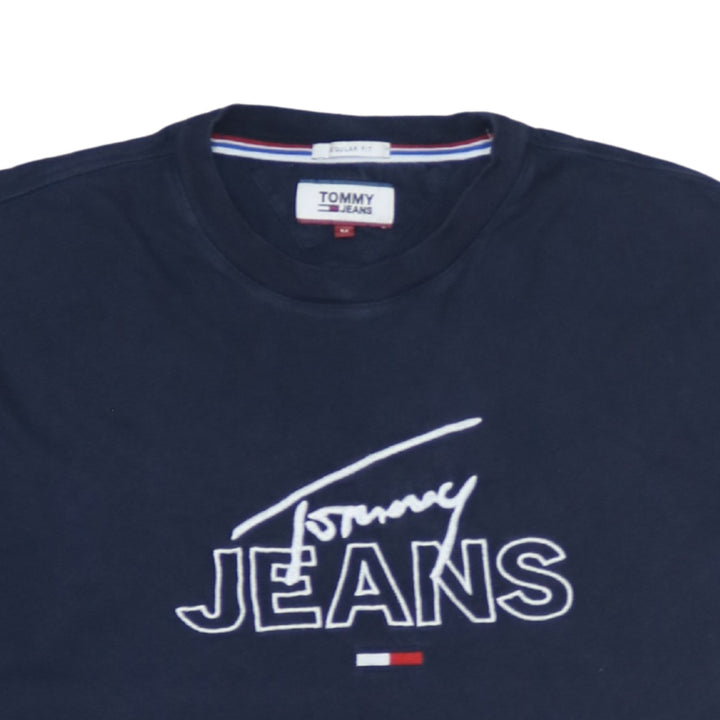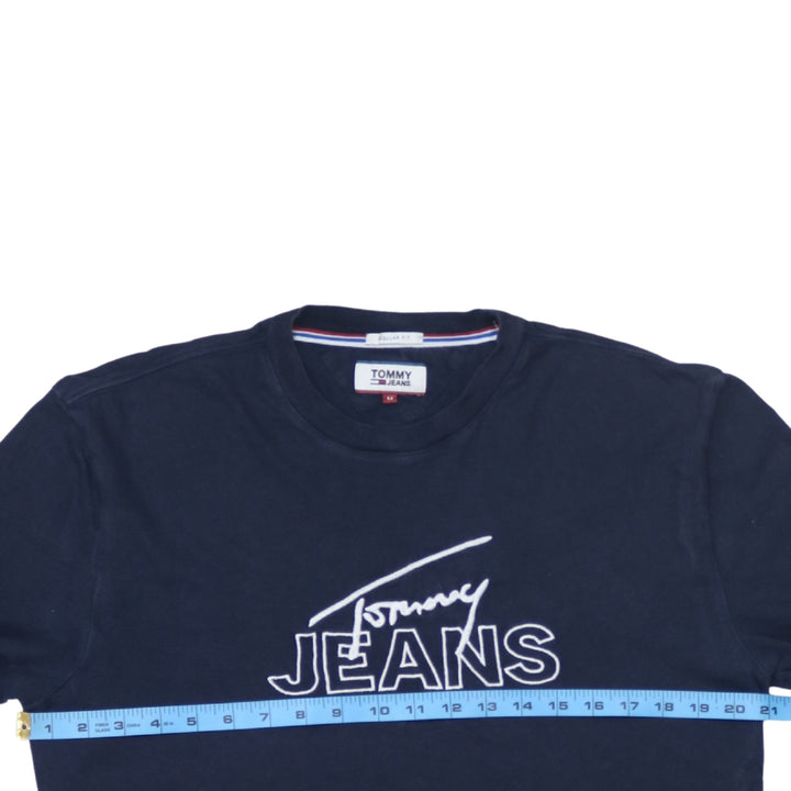 Tommy Jeans Navy Blue T Shirt Men's Medium Embroidered Front Logo Short Sleeve Tee