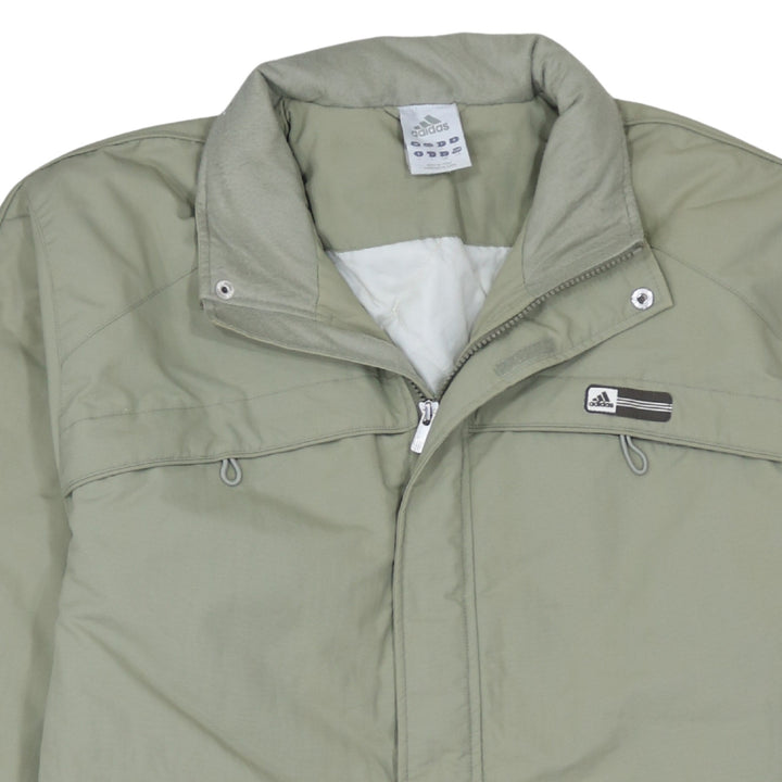 Adidas Sage Green Jacket Men’s Large Full Zip High Neck Logo Patch Windbreaker Outerwear