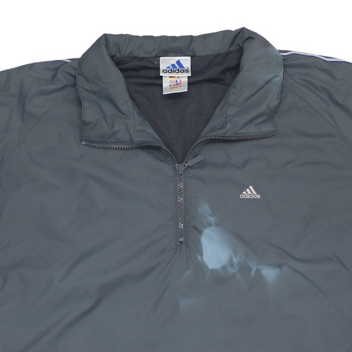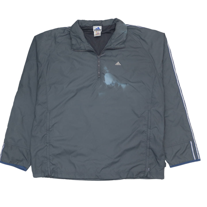 Adidas Dark Grey Windbreaker Jacket Men's Large Half Zip Three Stripe Sleeves Pullover Top