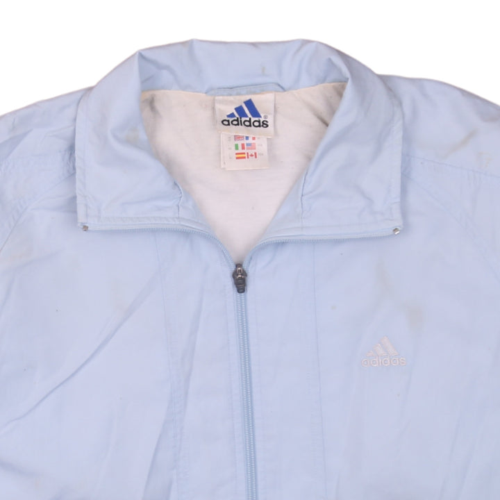 Adidas, Adidas jacket, Adidas windbreaker, Adidas track jacket, light blue Adidas, blue Adidas jacket, men’s Adidas jacket, men’s large jacket, large windbreaker, Adidas three stripe, three stripe sleeves, full zip jacket, zip up jacket, track top, casual jacket, sports jacket, athletic jacket, nylon jacket, polyester jacket, lightweight jacket, shell jacket, outerwear, spring jacket, summer jacket, layering piece, embroidered logo jacket, logo jacket, drawcord hem, zip pockets, men’s outerwear, Adidas clothing, Adidas sportswear, Adidas menswear, Adidas top, classic Adidas, training jacket, casual wear, everyday jacket, relaxed fit jacket, oversized fit jacket, vintage Adidas, pale blue jacket, pastel blue jacket, Adidas GB 16, festival jacket, gym jacket, running jacket, walking jacket, street style jacket