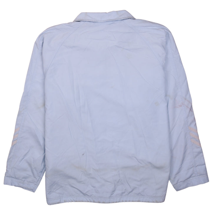 This light blue Adidas windbreaker is a versatile layering jacket, easy to throw on over tees or sweats for training, casual days or travelling. The lightweight shell and relaxed cut keep it comfortable, while the subtle three stripe sleeves and embroidered logo give it that classic sportswear look.
