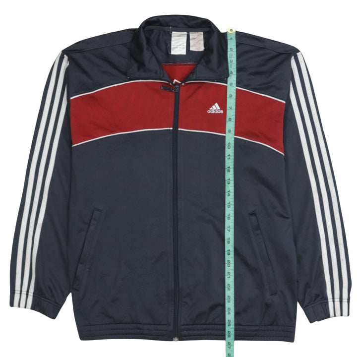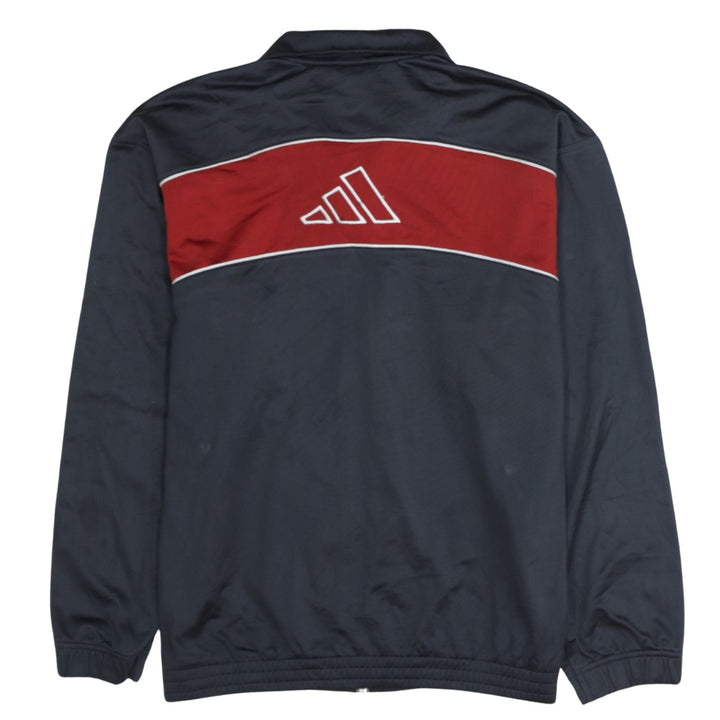 Adidas Navy Red Track Jacket Men’s Medium Three Stripe Sleeves Embroidered Logo Windbreaker
