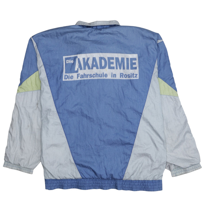 Adidas Blue Windbreaker Jacket Men's Medium Embroidered Logo Die Akademie Print Track Top