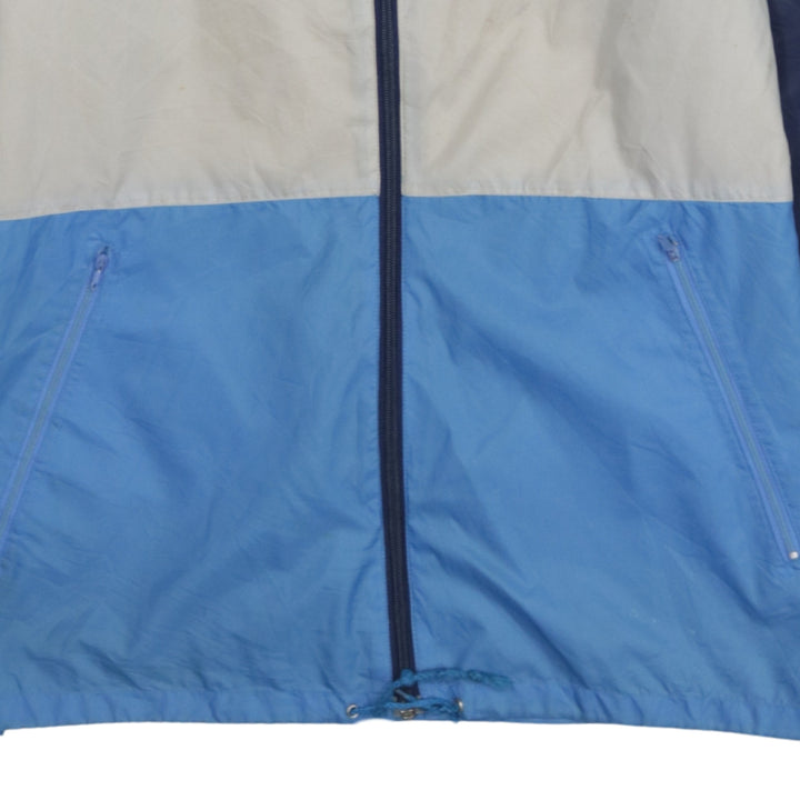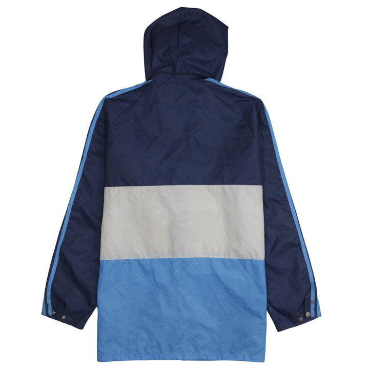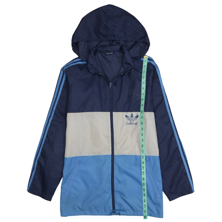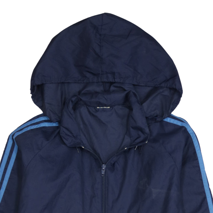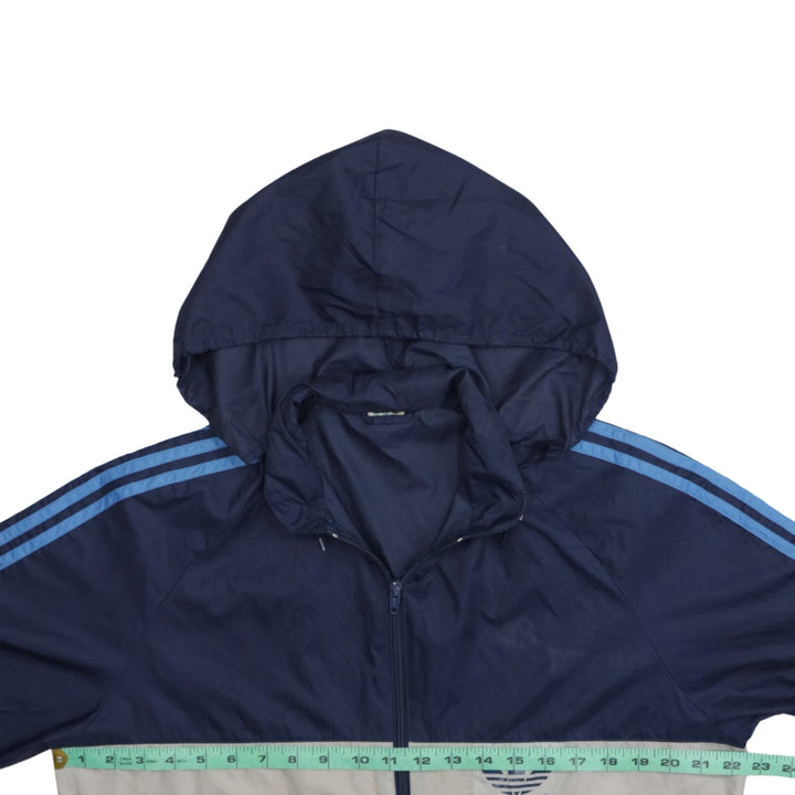 Adidas Navy Blue Colour Block Hooded Jacket Men's Medium Printed Trefoil Logo Three Stripe Windbreaker