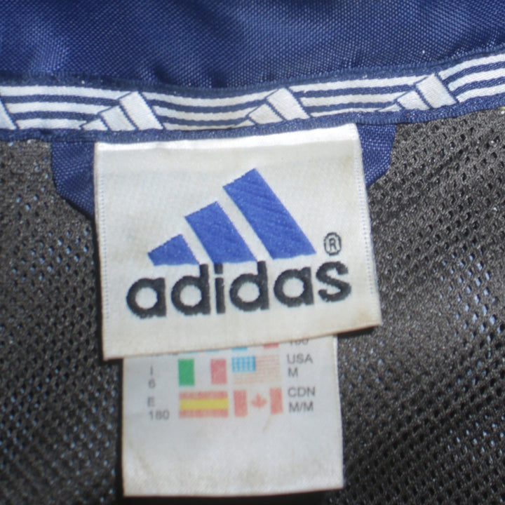 Adidas Blue Colour Block Windbreaker Jacket Men's Medium Hooded Zip Pockets Printed Logo Outerwear