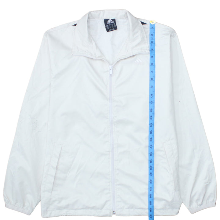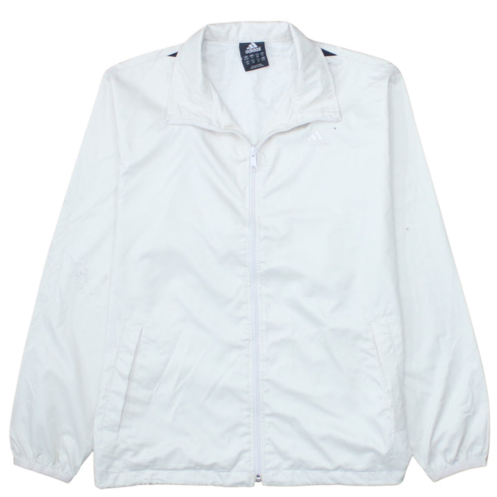 Adidas Cream White Windbreaker Jacket Men's Small Full Zip Embroidered Logo Pockets Outerwear