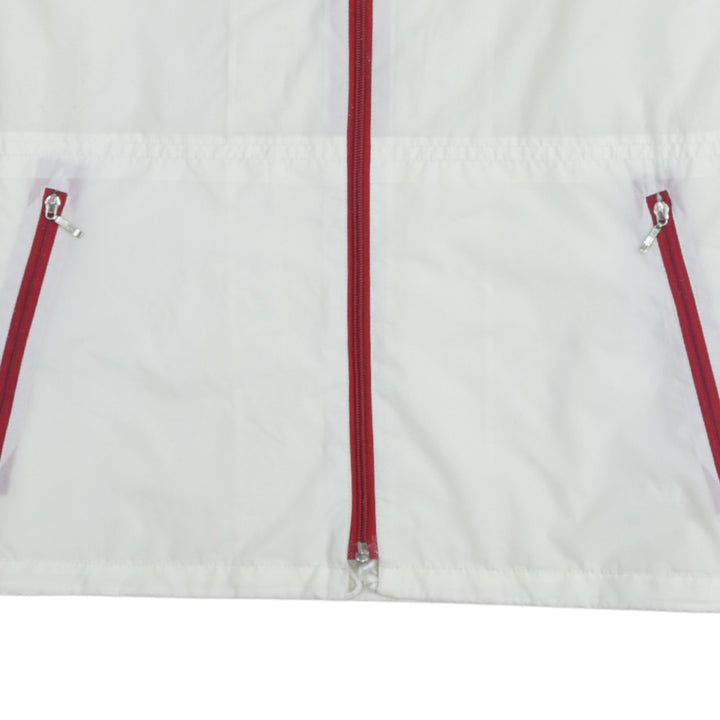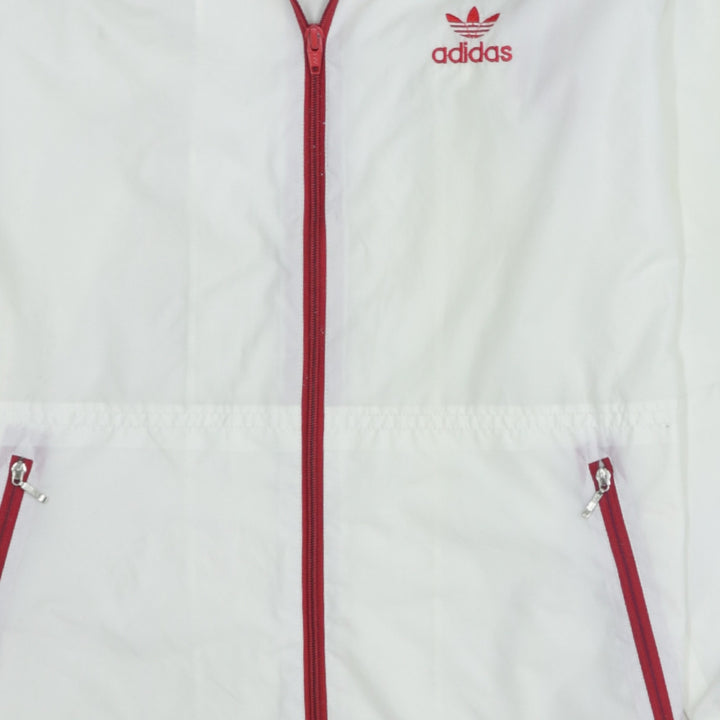 Adidas White Windbreaker Jacket Men's Small Trefoil Logo Red Zip Three Stripe Hooded Track Top