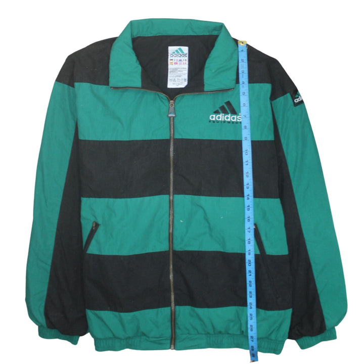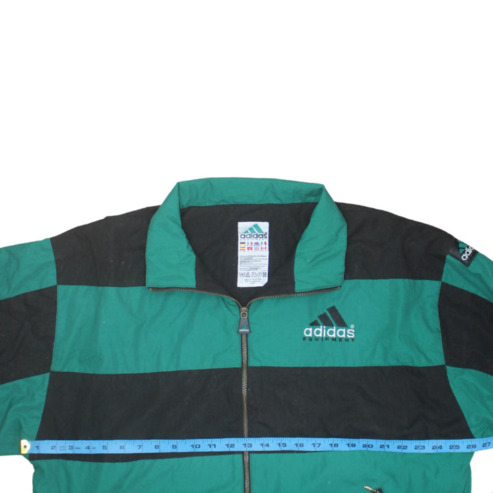 Adidas, Adidas Equipment, Adidas jacket, Adidas windbreaker, Adidas track jacket, green Adidas jacket, black Adidas jacket, green black jacket, men’s Adidas, men’s XLarge jacket, XL Adidas, full zip jacket, zip pockets jacket, embroidered logo jacket, back logo jacket, striped windbreaker, sportswear jacket, track top, terrace wear, casual outerwear, lightweight jacket, polyester jacket, wool blend jacket, elasticated hem, elasticated cuffs, stand collar jacket, long sleeve jacket, classic Adidas logo, Adidas Equipment logo, colour block jacket, green stripe jacket, black stripe jacket, oversized fit jacket, relaxed fit jacket, zip fastening jacket, men’s sports jacket, men’s outerwear, casual everyday jacket, second hand Adidas, pre-owned Adidas jacket, Adidas coat, Adidas shell jacket, shell windbreaker, 90s Adidas style, green black windbreaker, Adidas track top men’s XL