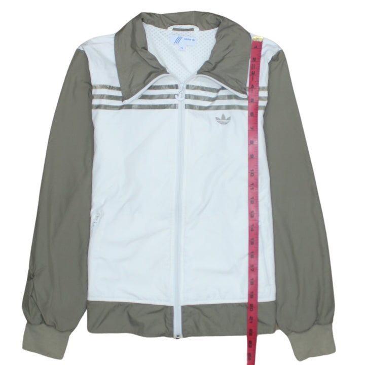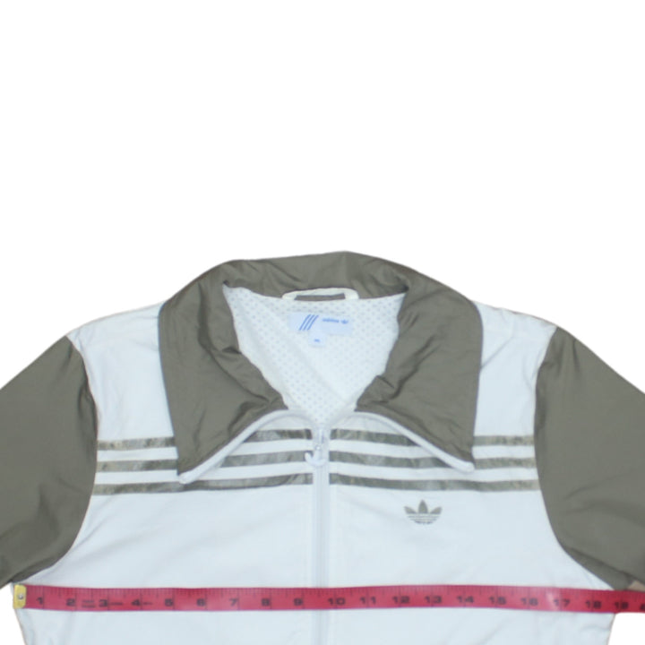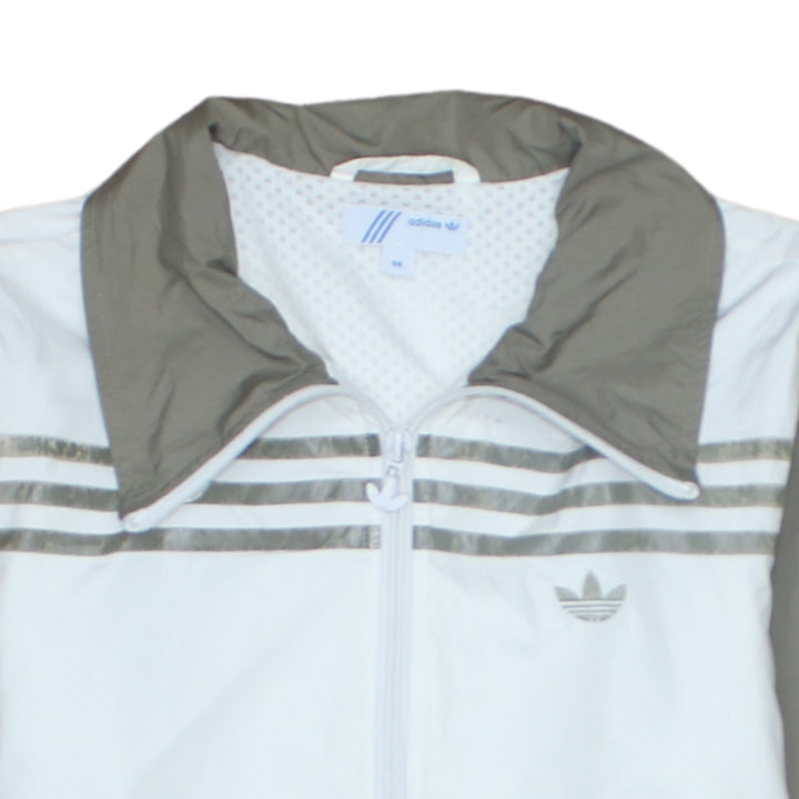 Adidas White Khaki Windbreaker Jacket Men's XSmall Embroidered Trefoil Triple Stripe Track Top