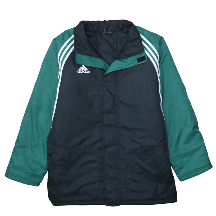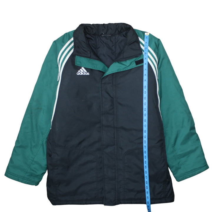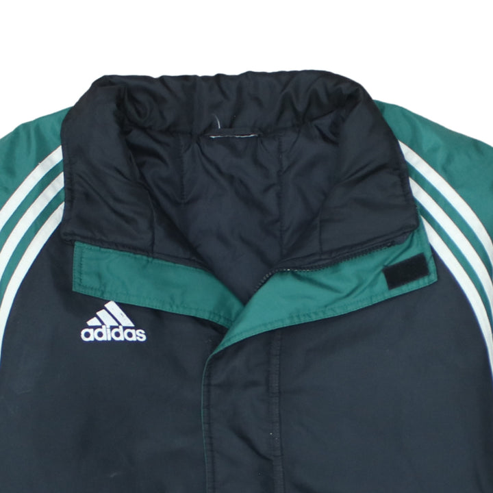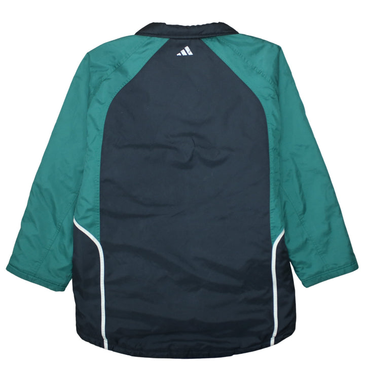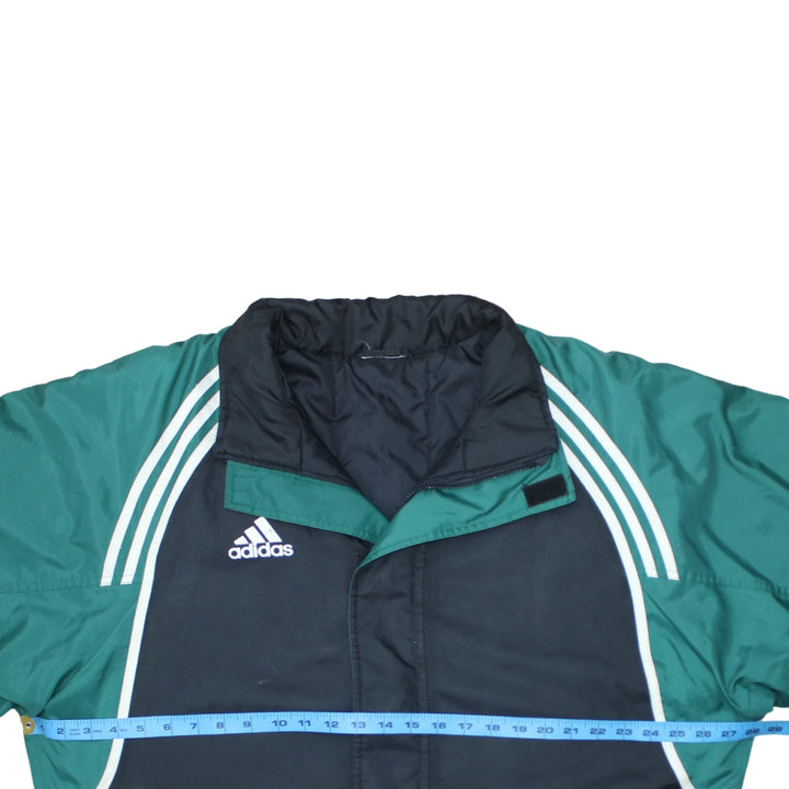 Adidas jacket, Adidas windbreaker, Adidas track jacket, Adidas outerwear, Adidas coat, black green Adidas jacket, colour block jacket, men's Adidas jacket, men's XXLarge jacket, men's XXL coat, Adidas embroidered logo, three stripe sleeves, Adidas three stripes, Adidas sportswear, Adidas football jacket, Adidas training jacket, padded windbreaker, lightweight padded coat, casual jacket, everyday outerwear, relaxed fit jacket, oversized fit jacket, vintage Adidas, classic Adidas, Adidas nylon jacket, polyester jacket, wool blend lining, longline jacket, zip front jacket, track top, shell jacket, athleisure jacket, black jacket men, green sleeves jacket, branded jacket, logo jacket, street casual jacket, terrace wear jacket, football fan jacket, training ground coat, rugby sideline jacket, outdoor sports jacket, Adidas menswear, Adidas XXLarge, Adidas XXL windbreaker, Adidas XXLarge track top, spring jacket, autumn jacket, layering piece