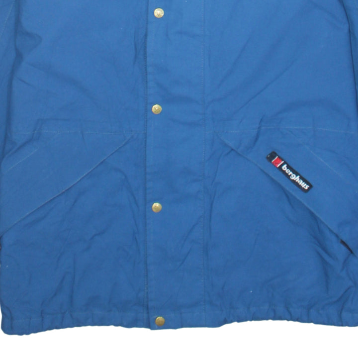 Berghaus Blue Hooded Windbreaker Jacket Men's Medium Mesh Lining Zip Snap Pockets Outerwear