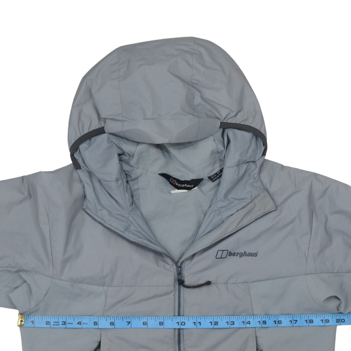 Berghaus Light Grey Hooded Jacket Men's XSmall Full Zip Pockets Printed Logo Windbreaker