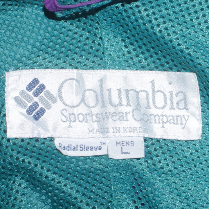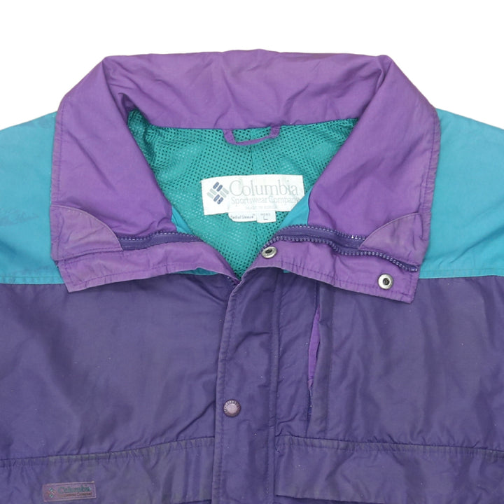 Columbia Purple Teal Windbreaker Jacket Men's Large Colour Block Zip Pockets Outdoor Coat