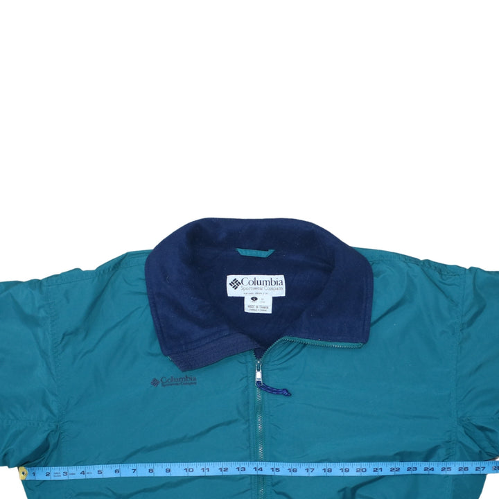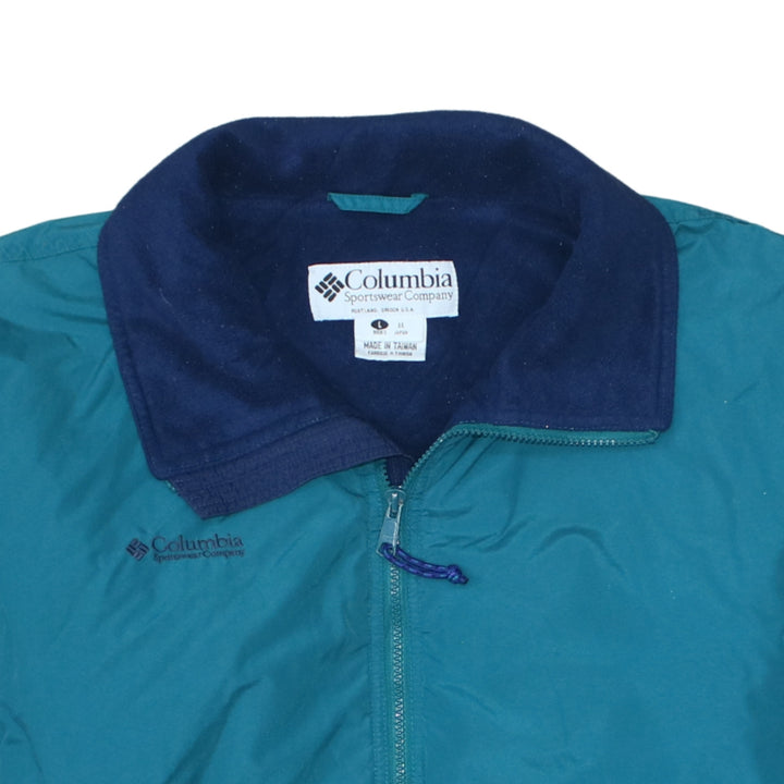 Columbia, Columbia jacket, Columbia windbreaker, teal jacket, green jacket, navy fleece lining, fleece lined jacket, men’s jacket, mens large jacket, large windbreaker, full zip jacket, zip jacket, outdoor jacket, casual jacket, shell jacket, track jacket, lightweight jacket, embroidered logo jacket, logo jacket, elastic hem jacket, elastic cuffs, teal green coat, men’s outerwear, relaxed fit jacket, oversized fit jacket, polyester jacket, wool blend lining, Columbia Sportswear Company, classic Columbia, everyday jacket, walking jacket, hiking jacket, casual outerwear, layering piece, zip pockets jacket, vintage Columbia, teal windbreaker, men’s casual wear, street jacket, sporty jacket, 90s style Columbia, men’s large outerwear, teal fleece lined jacket, green Columbia coat, spring jacket, autumn jacket, cold weather layer, practical jacket, classic outdoor brand, timeless outerwear, zip front coat
