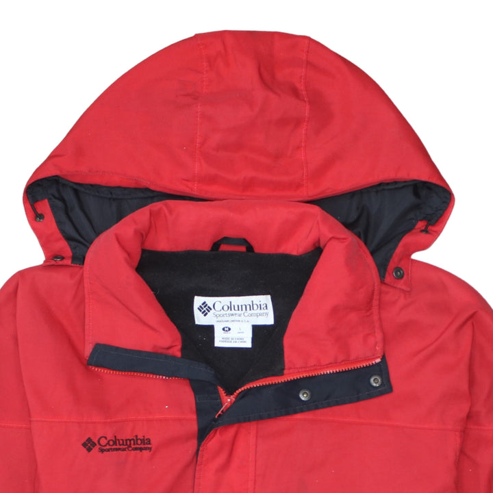 Columbia Red Hooded Jacket Men's Medium Embroidered Logo Zip Front Windbreaker Coat