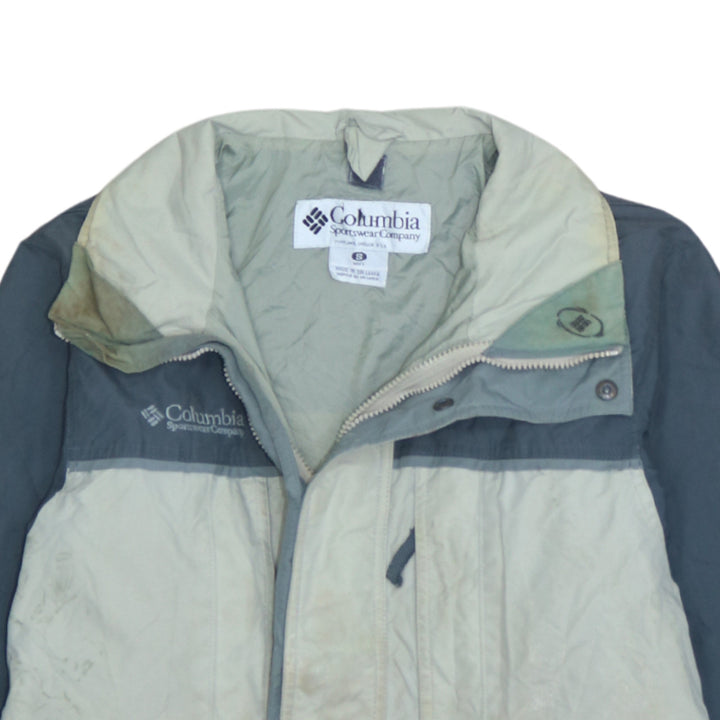 Columbia jacket, Columbia windbreaker, Columbia coat, Columbia Sportswear Company, men's Columbia jacket, men's small jacket, small men's coat, grey Columbia jacket, light grey jacket, dark grey sleeves, colour block jacket, full zip jacket, zip front coat, outdoor jacket, outdoor coat, casual jacket, everyday jacket, Columbia embroidered logo, logo jacket, vintage Columbia coat, 90s Columbia style, men's outerwear, men's windbreaker, lightweight jacket, polyester jacket, wool blend jacket, relaxed fit jacket, oversized fit jacket, pit to pit 22, length 28, arm 25, hiking jacket, walking jacket, travel jacket, practical jacket, utility jacket, sportswear jacket, casual outerwear, waterproof style jacket, shell jacket, grey outdoor coat, thrift jacket, sustainable fashion, second hand jacket, pre owned Columbia, colour block outerwear, classic Columbia style, men's grey coat, autumn jacket, winter layering piece