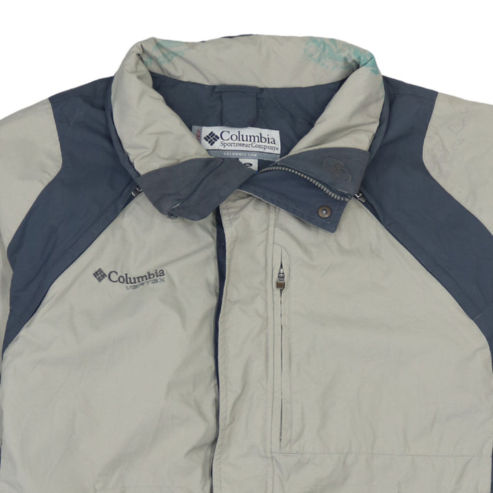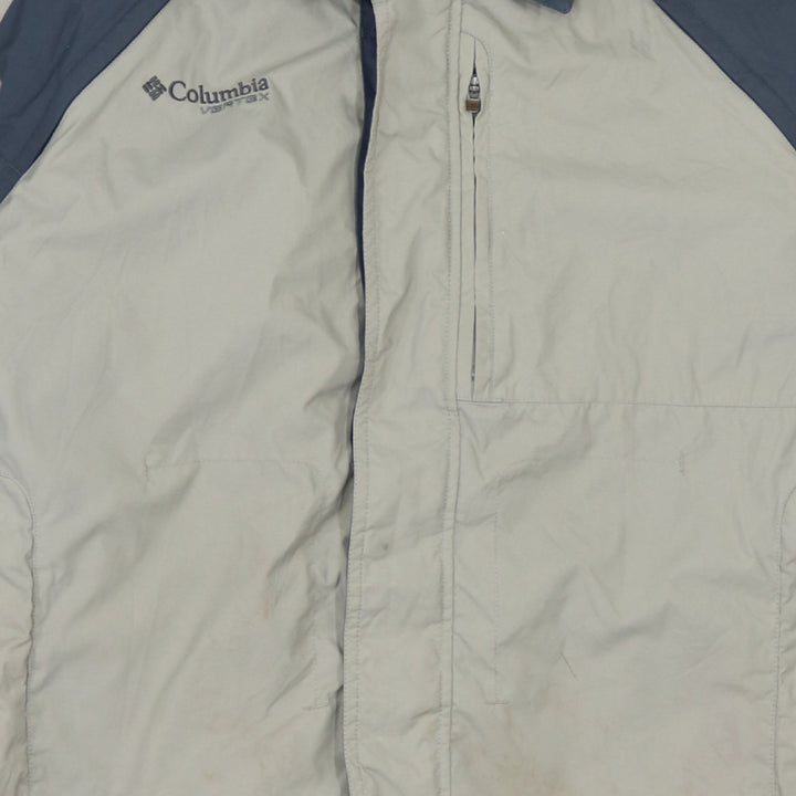 Columbia, Columbia jacket, Columbia windbreaker, Columbia outerwear, beige jacket, cream jacket, grey jacket, colour block jacket, men's jacket, mens XLarge jacket, XL jacket, men's windbreaker, outdoor jacket, hiking jacket, walking jacket, shell jacket, lightweight jacket, polyester jacket, wool blend jacket, full zip jacket, zip front jacket, embroidered logo jacket, Columbia Sportswear Company, core interchange, casual jacket, everyday jacket, utility jacket, sportswear jacket, waterproof style jacket, breathable jacket, loose fit jacket, relaxed fit jacket, oversized fit jacket, long sleeve jacket, zip pockets jacket, chest pocket jacket, elastic cuffs jacket, spring jacket, autumn jacket, layering piece, neutral colour jacket, beige grey windbreaker, men's outerwear, urban outdoor style, functional jacket, second hand Columbia, pre owned Columbia jacket, thrifted jacket, sustainable fashion