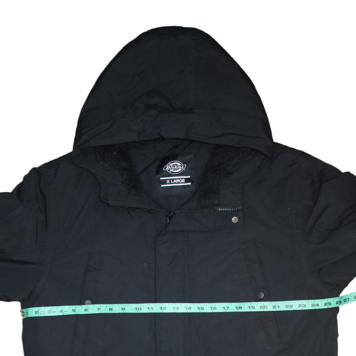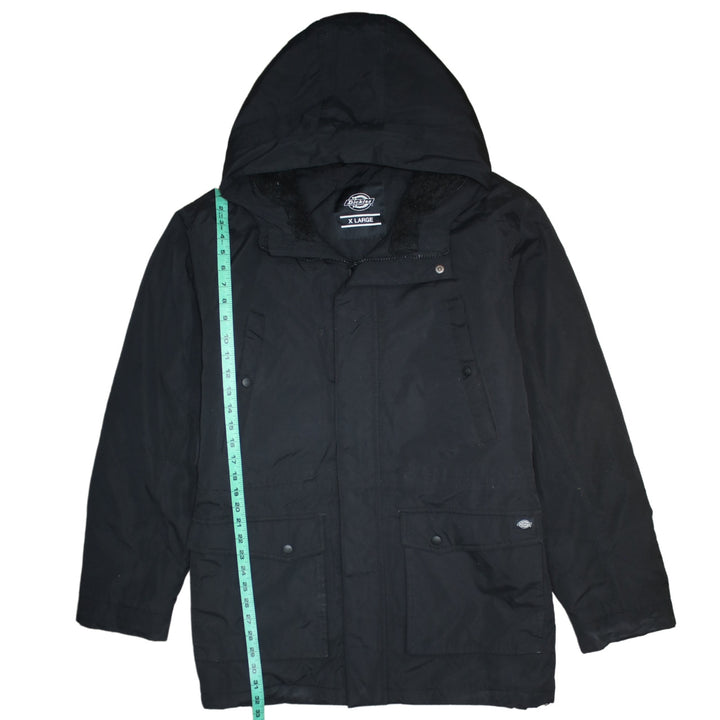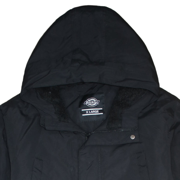 Dickies Black Hooded Jacket Men’s XLarge Zip Pockets Faux Fur Lined Parka Coat