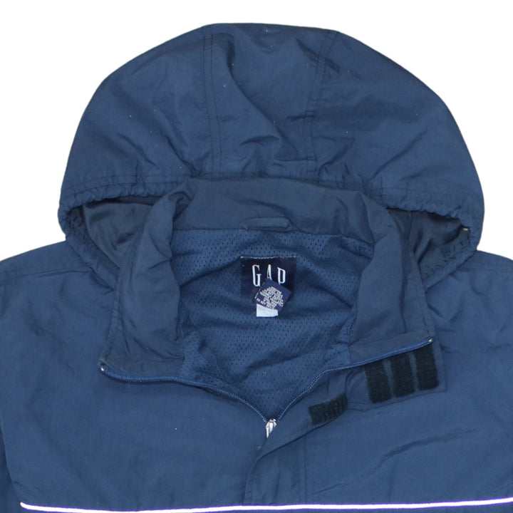 Classic Gap hooded windbreaker in a versatile navy blue, ideal for layering across seasons.Lightweight yet durable, with practical pockets and breathable mesh lining to keep you comfortable.Perfect for commuting, outdoor walks or throwing on over your favourite casual outfits.A quality staple piece that adds functional style to any wardrobe.
