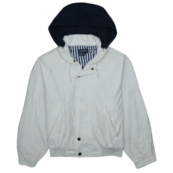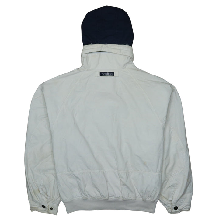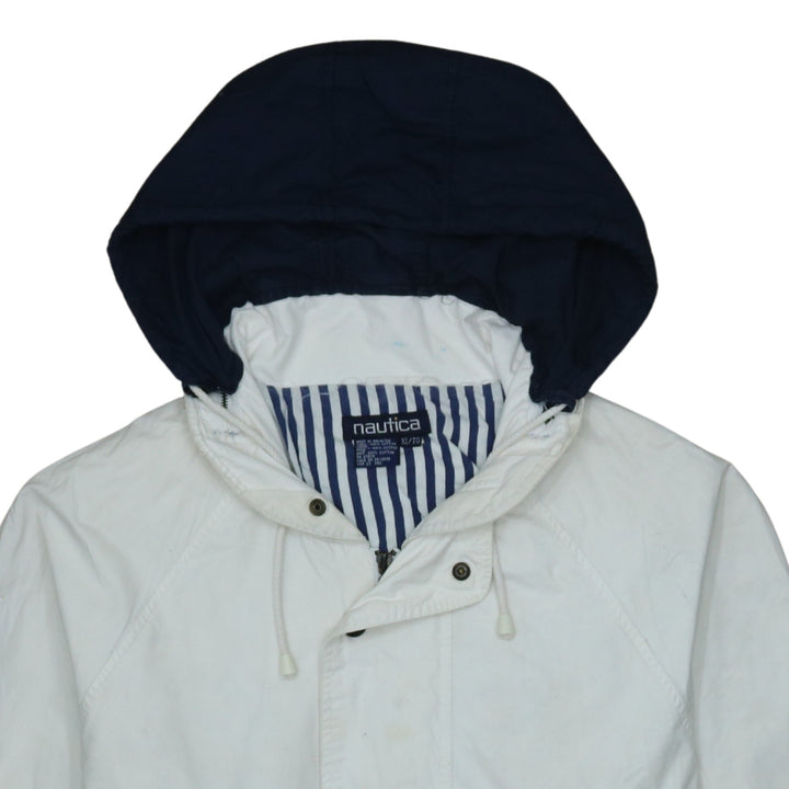 Nautica jacket, Nautica hooded jacket, Nautica cream jacket, Nautica sailing jacket, Nautica windbreaker, cream hooded jacket, cream cotton jacket, men’s Nautica jacket, men’s cream jacket, men’s hooded coat, men’s windbreaker, men’s XLarge jacket, XL hooded jacket, cotton shell jacket, striped lining jacket, contrast hood jacket, embroidered logo jacket, Nautica embroidered logo, casual outerwear, blouson jacket, elastic hem jacket, ribbed hem jacket, ribbed cuffs jacket, full zip jacket, zip and snap jacket, drawstring hood coat, men’s casual coat, everyday jacket, layering jacket, classic Nautica style, cream navy jacket, relaxed fit jacket, oversized fit jacket, menswear outerwear, spring jacket, autumn jacket, sailing style coat, casual weekend jacket, pre-owned Nautica, second hand Nautica, Nautica XL men’s, cream Nautica windbreaker, cotton lined jacket, hooded outerwear, lightweight coat, Nautica cream hooded coat, Nautica striped lining coat, Nautica logo back patch, Nautica casual wear