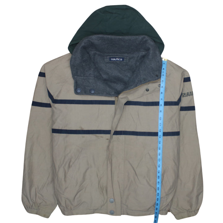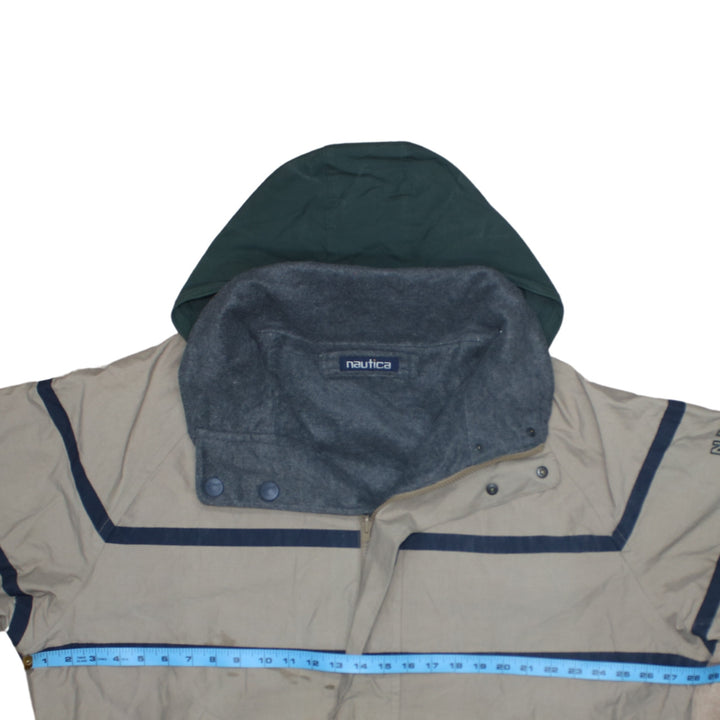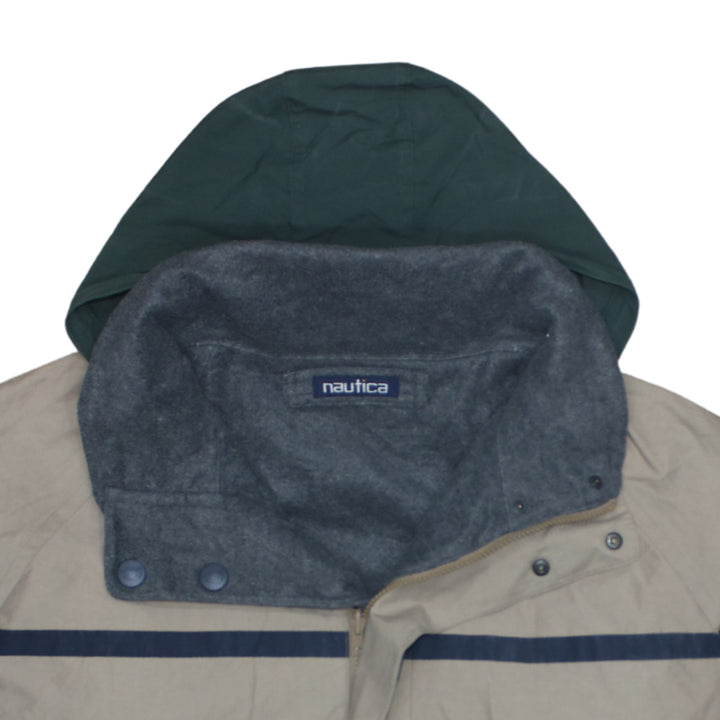 Nautica jacket, Nautica hooded jacket, Nautica windbreaker, Nautica sailing jacket, Nautica fleece lined jacket, Nautica beige jacket, beige cream jacket, green hood jacket, navy stripe jacket, men's Nautica coat, men's hooded jacket, men's XXLarge jacket, XXL Nautica, Nautica embroidered logo, fleece lined windbreaker, casual outerwear, everyday jacket, nautical style jacket, stripe detail coat, elasticated hem jacket, elastic cuffs jacket, full zip coat, snap fastening jacket, polyester wool jacket, men's casual coat, relaxed fit jacket, oversized fit jacket, outdoor jacket, sailing outerwear, classic Nautica style, second hand Nautica, pre-owned Nautica jacket, Nautica fleece lining, men's beige windbreaker, green hood windbreaker, stripe sailing coat, logo sleeve jacket, Nautica outerwear men, Nautica XXLarge coat, casual sailing style, coastal wear jacket, lightweight shell jacket, lined hooded jacket, branded men's jacket, Nautica cream coat, men's winter layer, transitional season jacket, everyday Nautica windbreaker, Nautica casual wear
