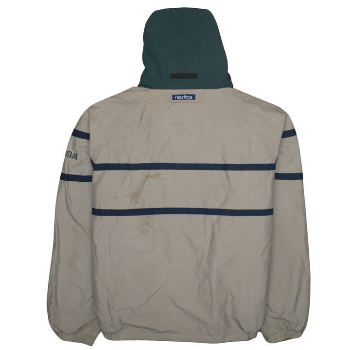 Nautica Beige Cream Hooded Jacket Men's XXLarge Stripe Detail Embroidered Logo Windbreaker Outerwear