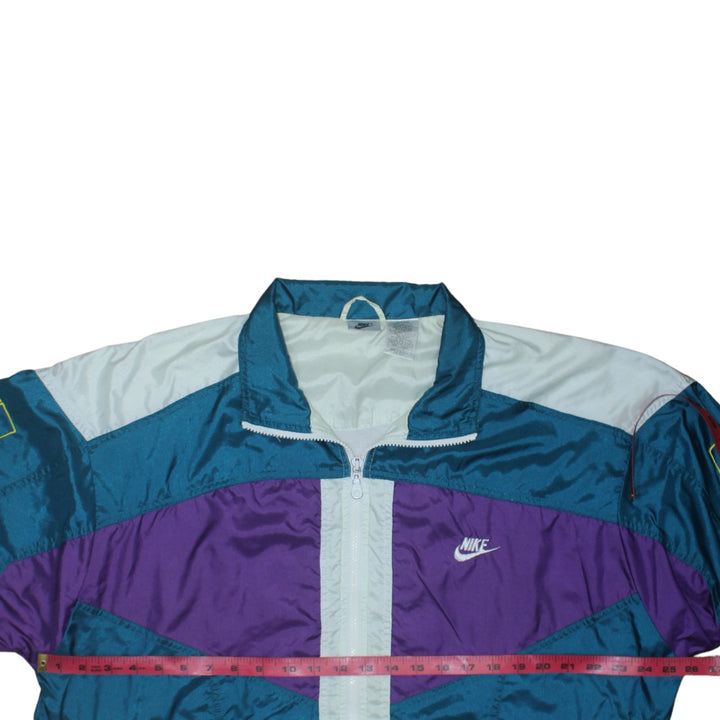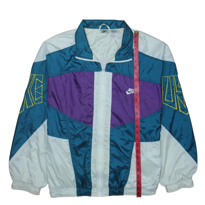 Nike Teal Purple Windbreaker Jacket Men's Large Colour Block Printed Sleeve Logo Track Top
