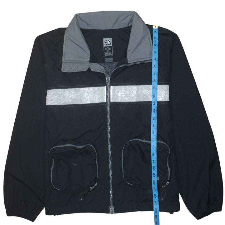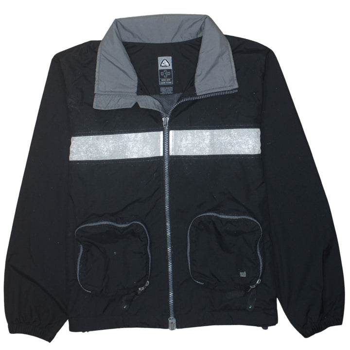 Nike Black Reflective Windbreaker Jacket Men's Medium Zip Pockets Grey Collar Outerwear
