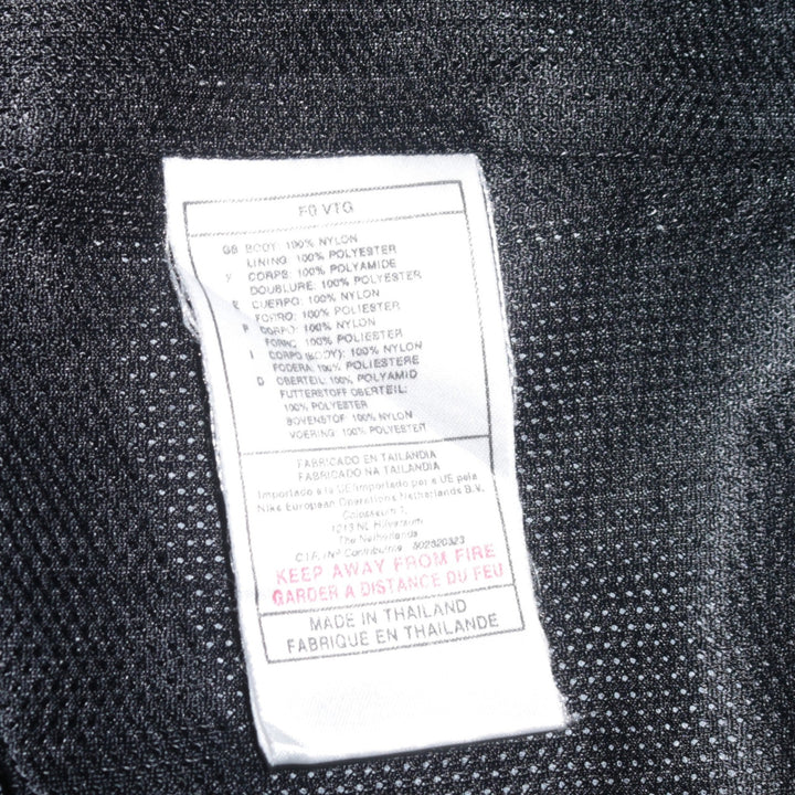 Nike, Nike jacket, Nike windbreaker, Nike track jacket, black Nike jacket, black windbreaker, black reflective jacket, reflective stripe jacket, men's Nike, men's jacket, men's windbreaker, men's track top, size medium, medium jacket, nylon jacket, lightweight jacket, sports jacket, athletic jacket, training jacket, running jacket, casual jacket, full zip jacket, zip front jacket, stand collar jacket, grey collar, zip pockets, elastic cuffs, mesh lining, outerwear, shell jacket, reflective outerwear, black medium Nike, Nike outerwear medium, relaxed fit jacket, oversized fit jacket, commuter jacket, activewear jacket, layering piece, casual sportswear, everyday jacket, classic Nike style, Nike reflective windbreaker, black grey Nike windbreaker, street jacket, track top outerwear