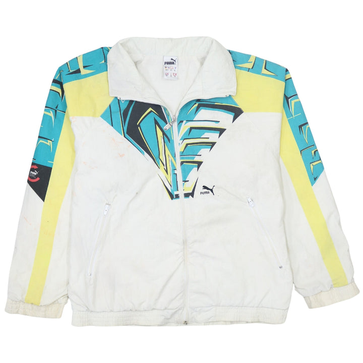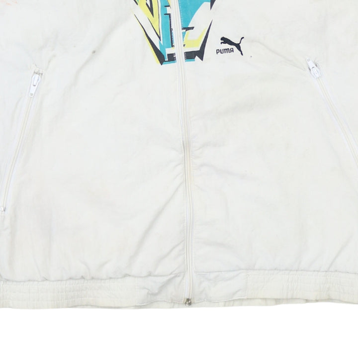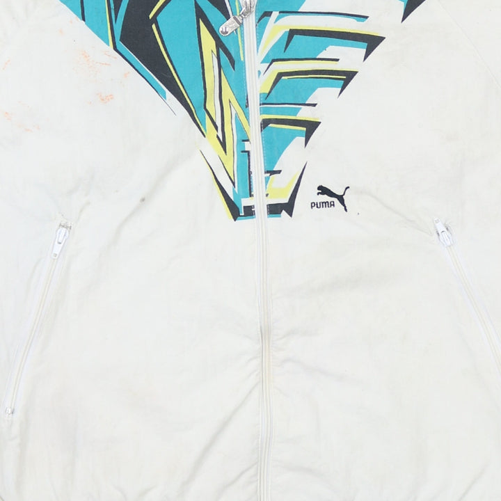 Puma White Multi Windbreaker Jacket Men's Large Graphic Sleeves Zip Pockets Track Top