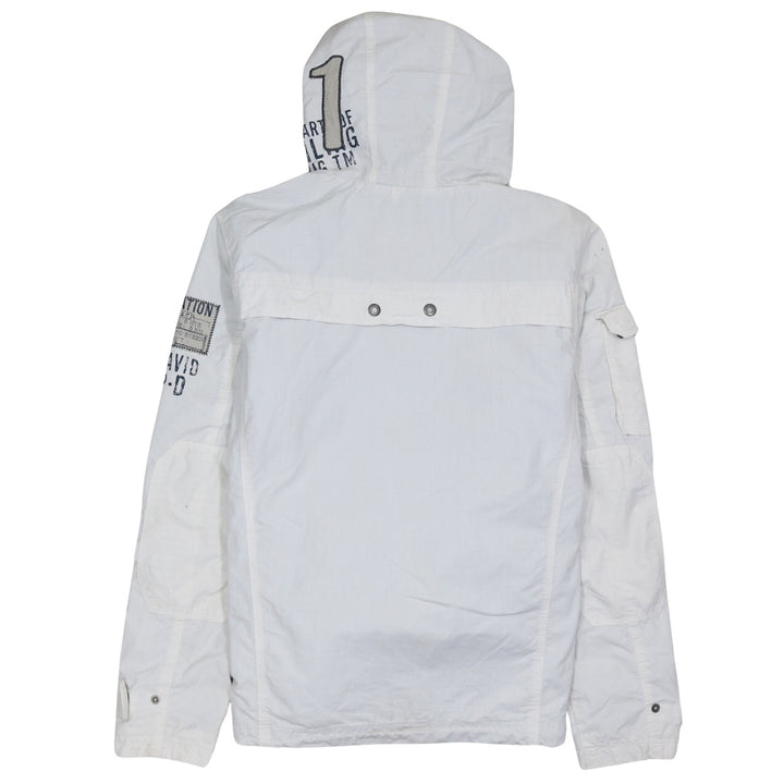 Camp David White Hooded Windbreaker Men’s Medium Half Zip Pockets Printed Logos Jacket