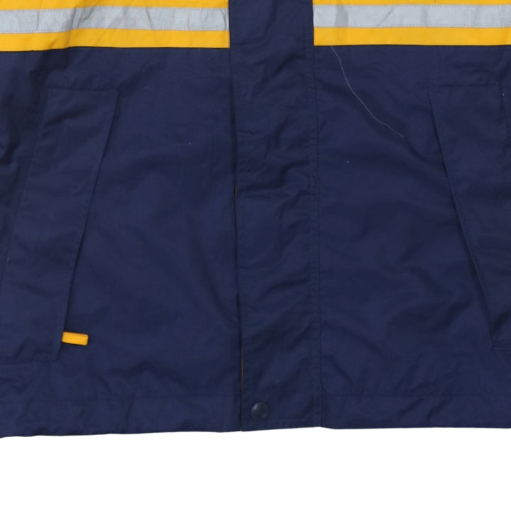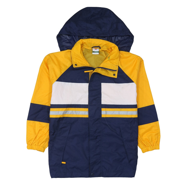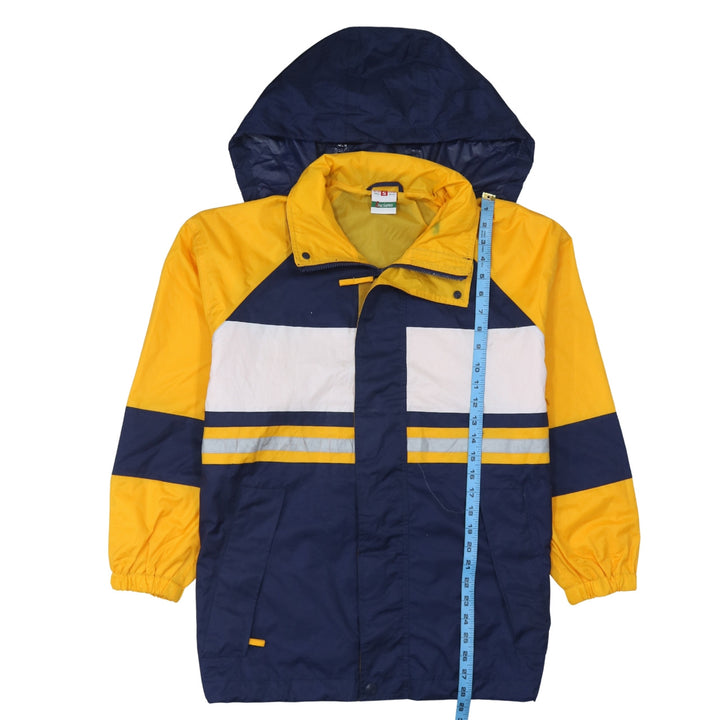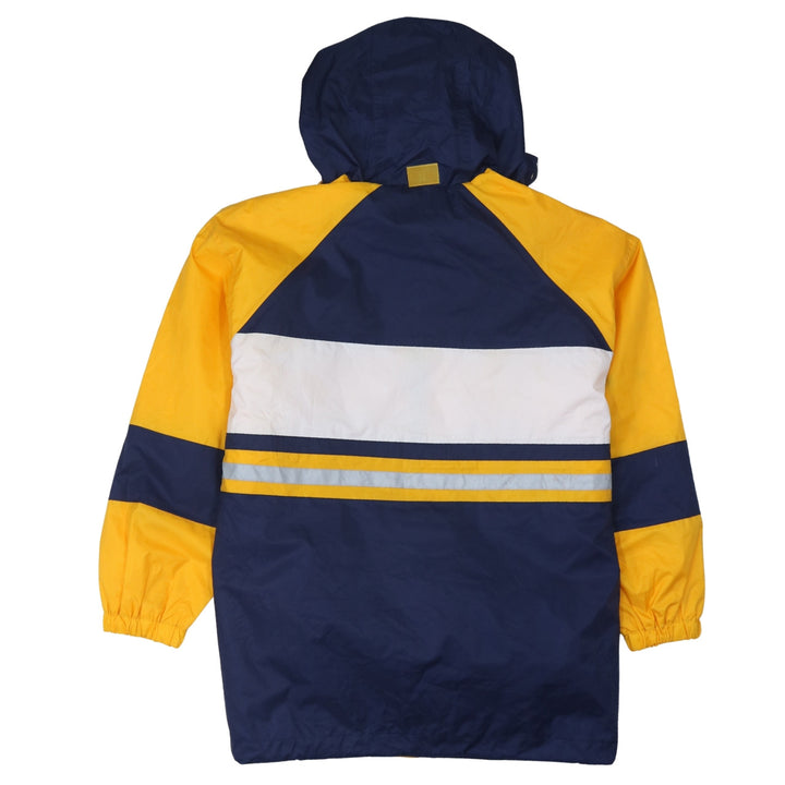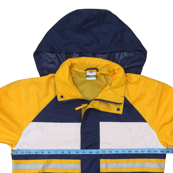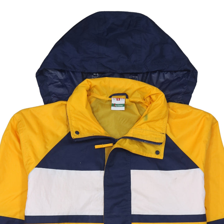 Retro Navy Yellow Windbreaker Jacket Men's Small Hooded Colour Block Zip Pockets Outerwear